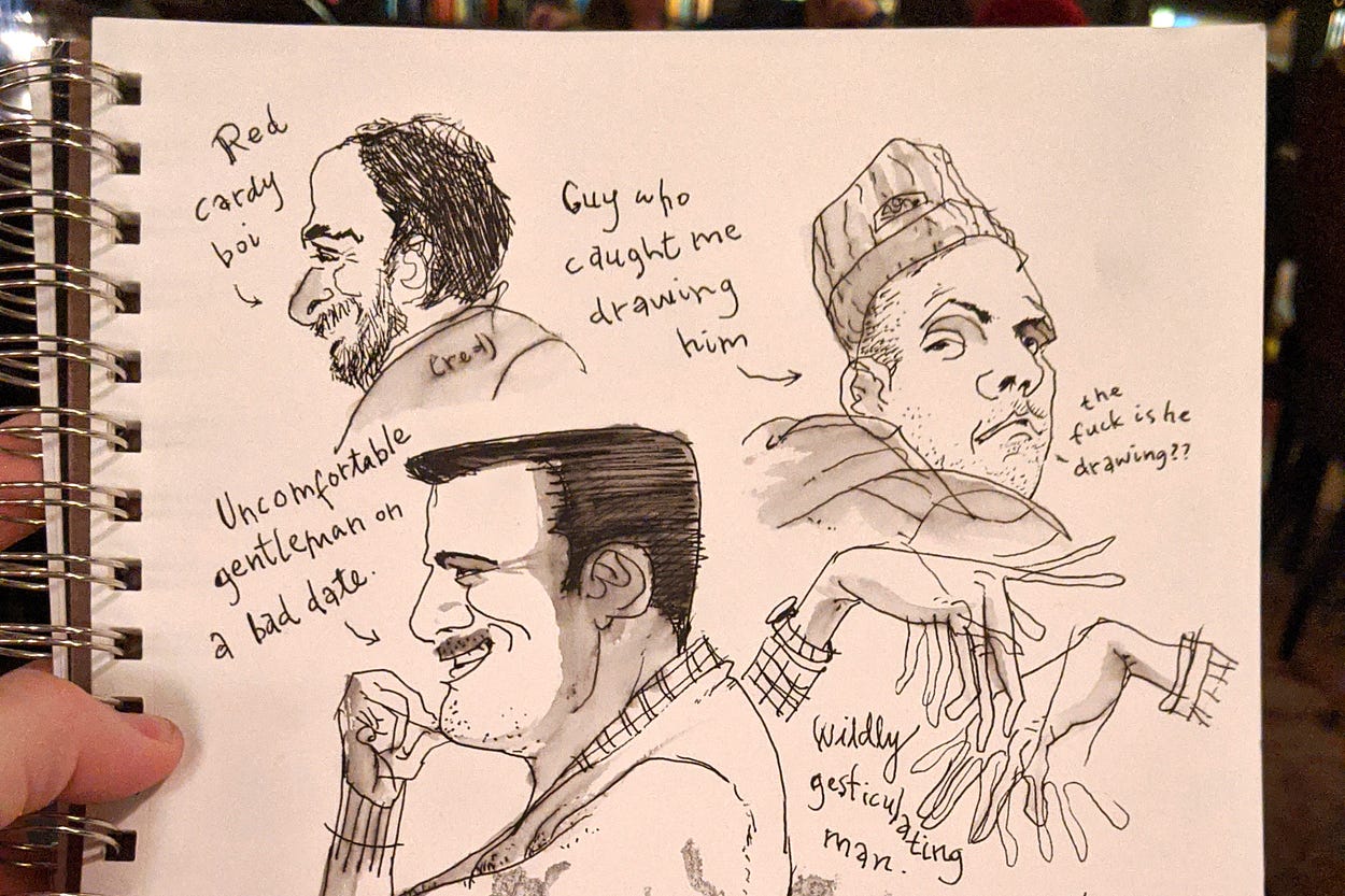 Substack throws a writers' party at EAT, sending in the cartoonists to document the damage.
