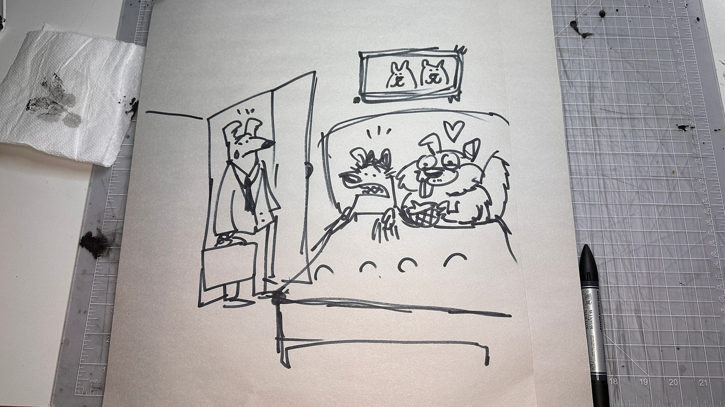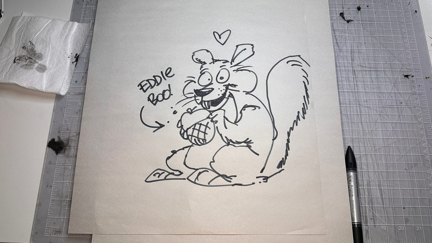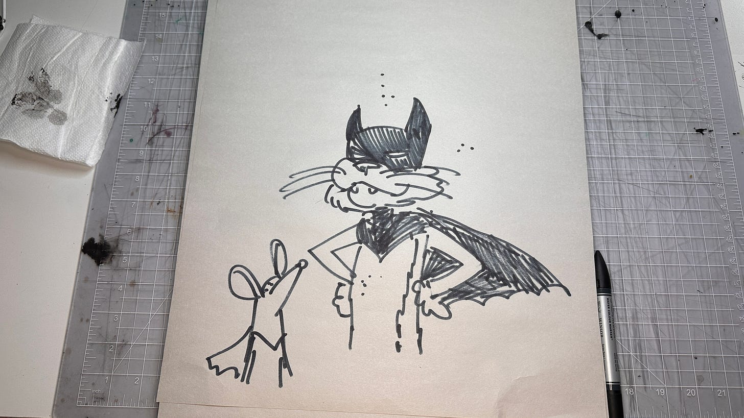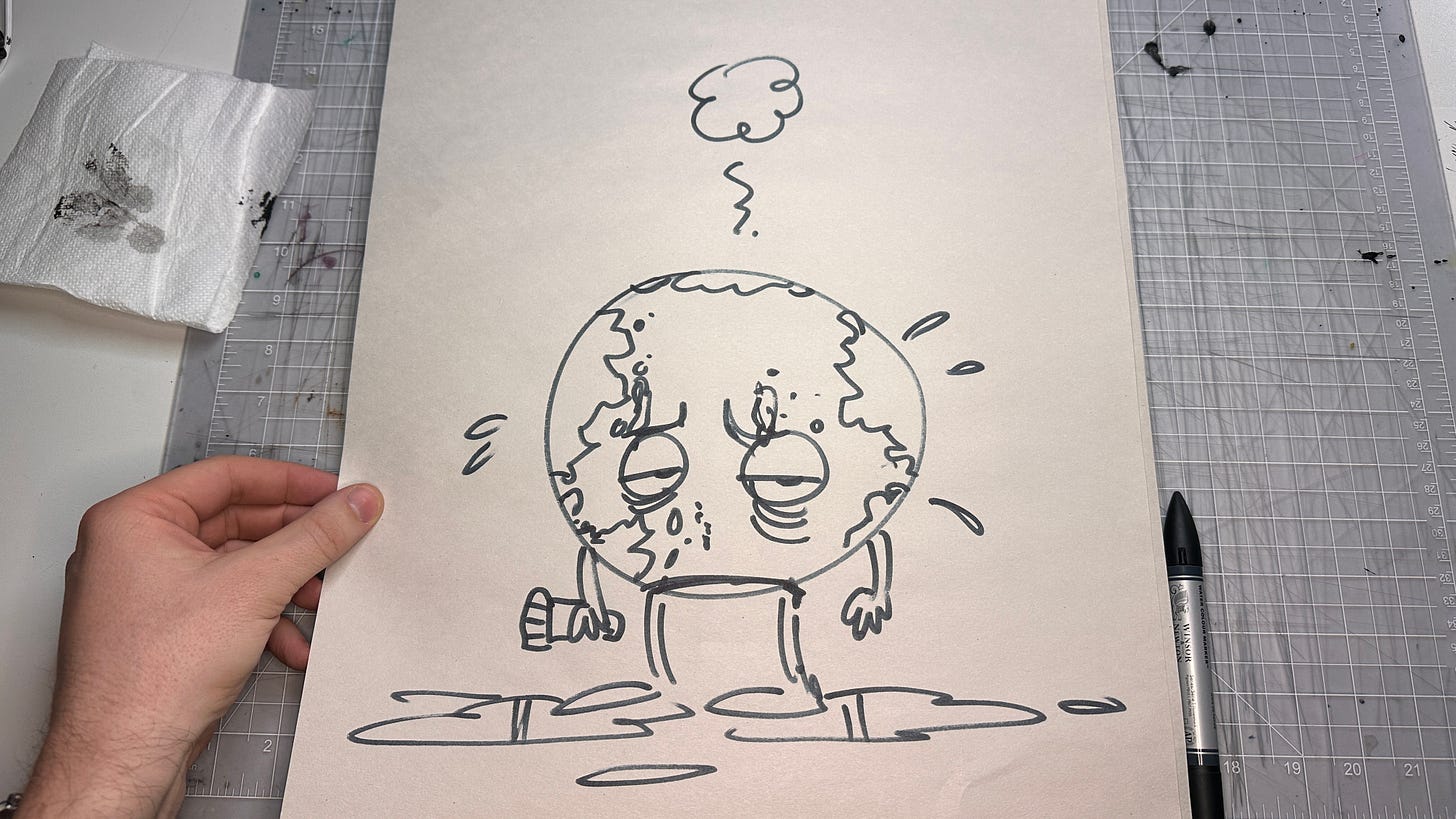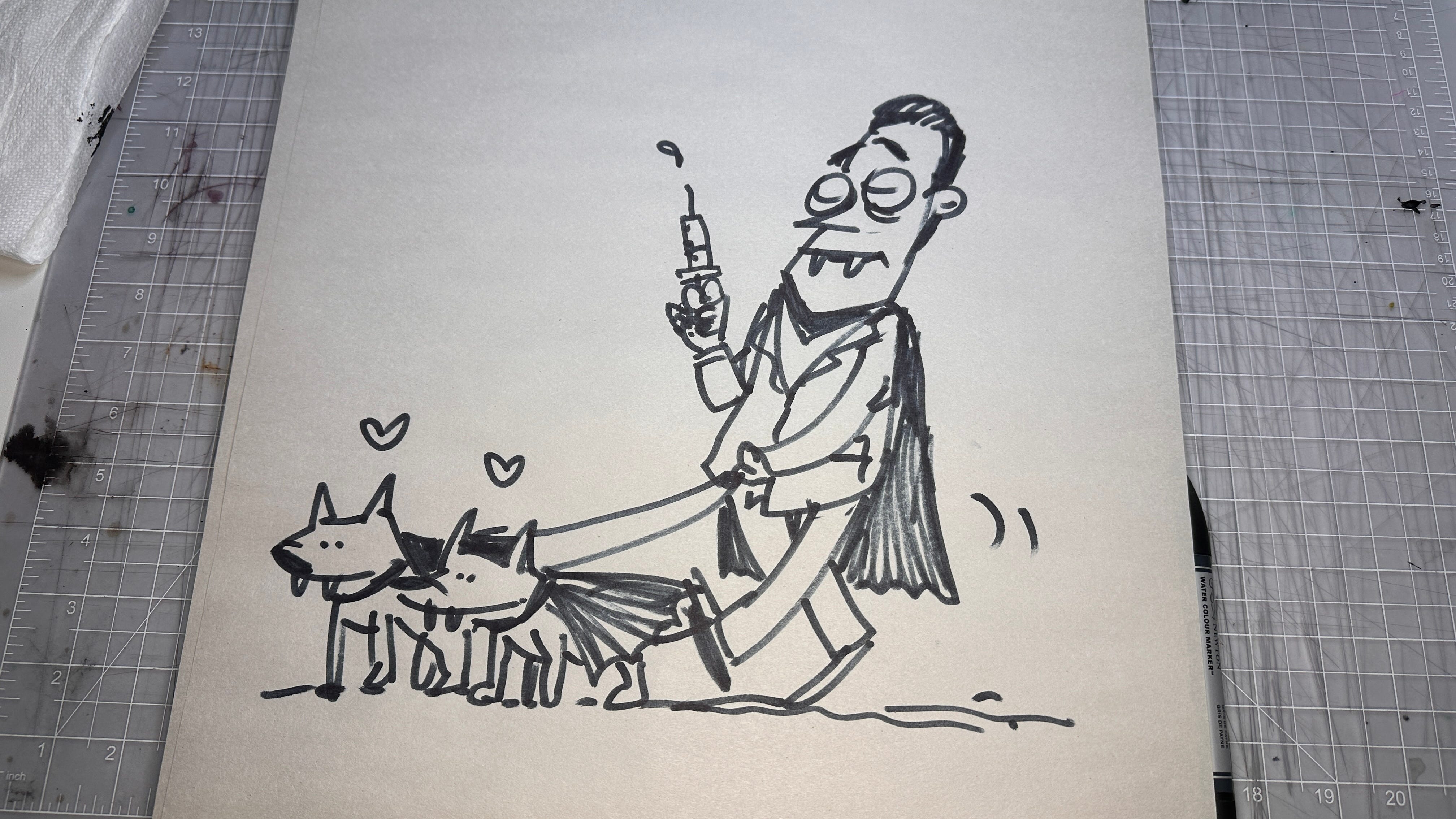 Just when I thought the value of my hand-drawn art was drying up, a new idea like this popped into the world, and I was animated to get scribbling again. I hope hand-drawn, tangible art like this is valued in the future over cheap, soulless AI-generated slop.