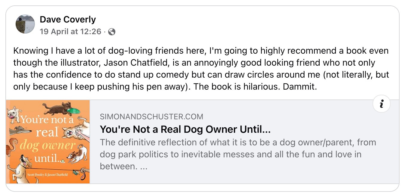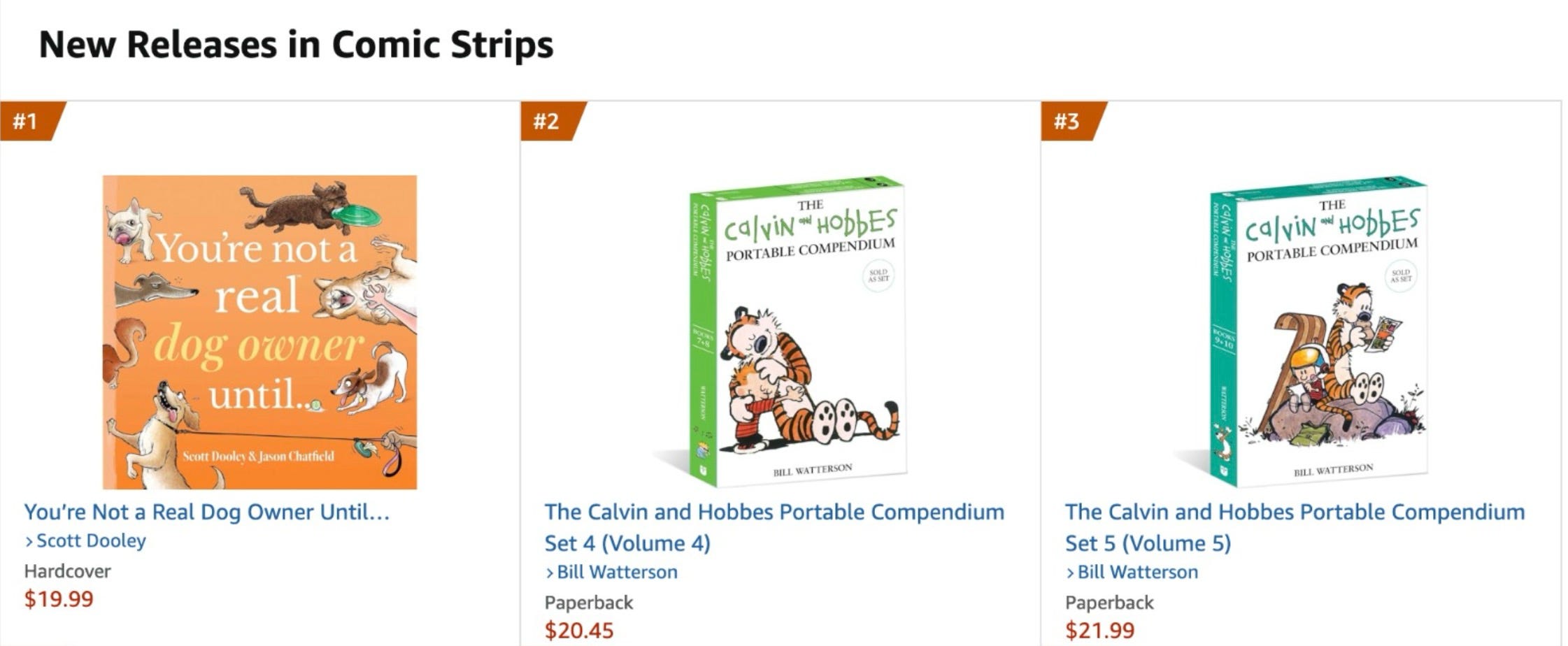 Just one more week before the new book “You’re Not A Real Dog-Owner Until…” is on shelves! I’m really proud of how it turned out. It’s now #1 in New Releases in Comic Strips on Amazon! I’ve never heard of the other two on the list… 😁