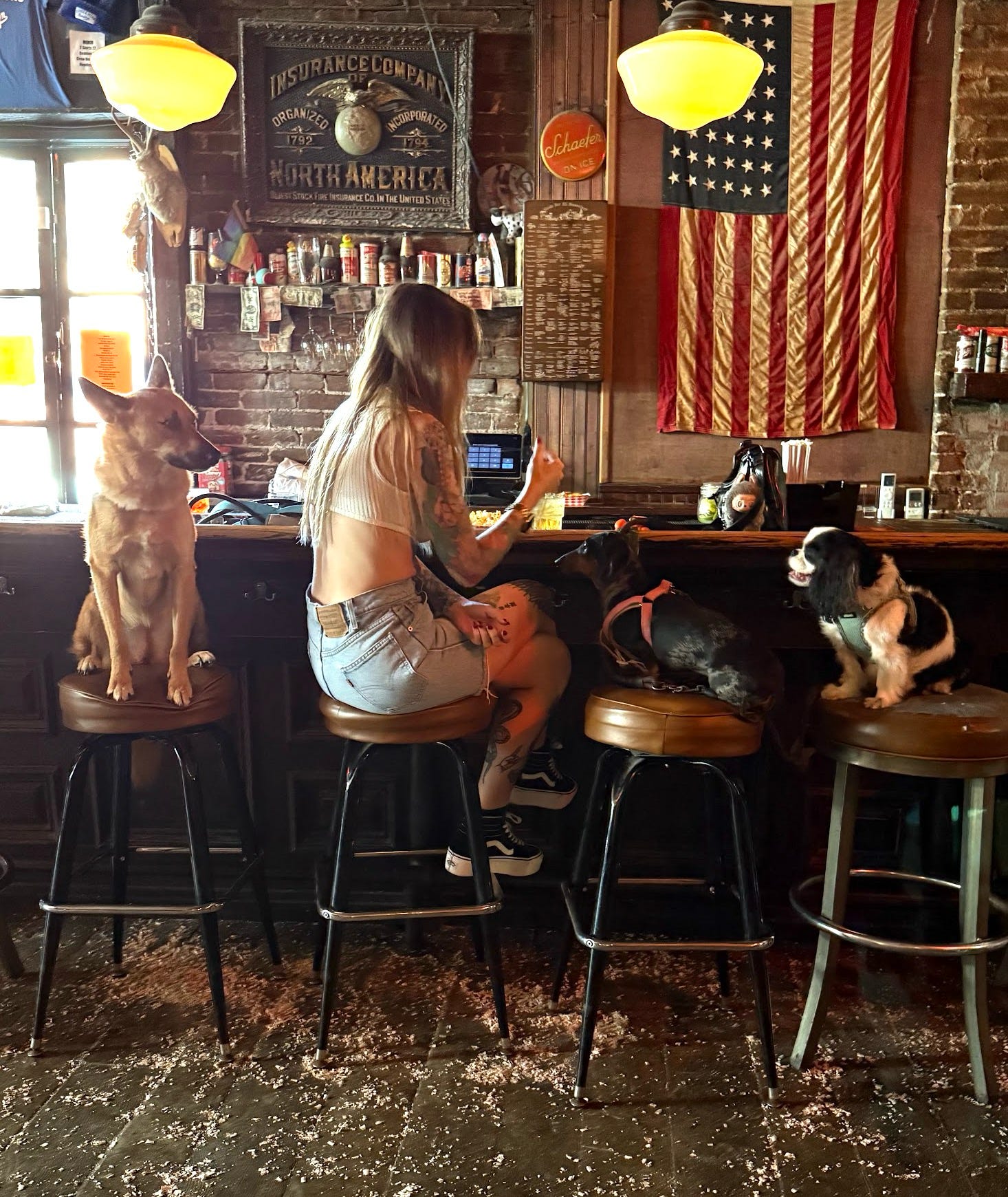 After a few rounds at George & Jack’s, I turned to find a dog-walker who had brought some good boys and girls into the bar. I immediately bought them a round of treats. And pats.