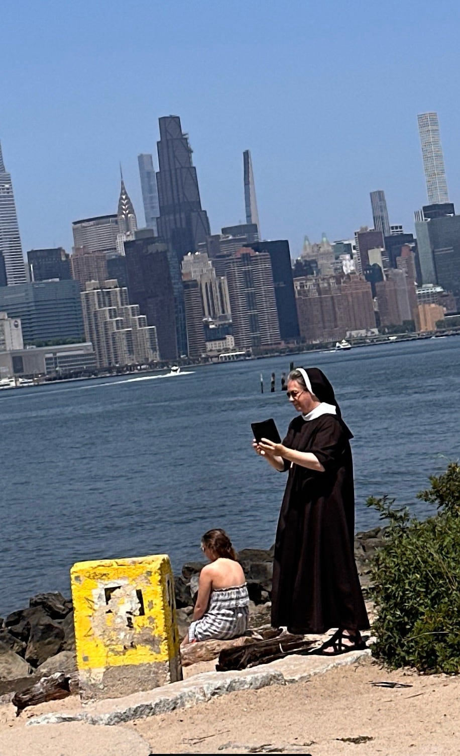 On Sunday, I thought I saw a nun reading her bible, but when I looked closer, it was just her phone case, and she was taking a selfie.