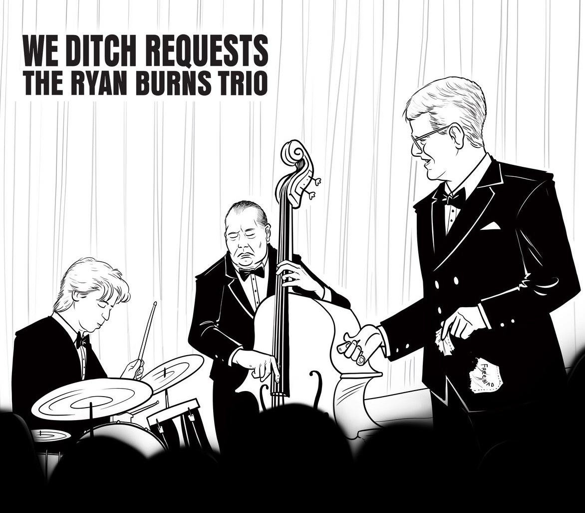 a while back may be interested in seeing my latest illustration for his new album. It’s a parody of the famous Oscar Peterson Trio album ‘We Get Requests’—…except this one is called: