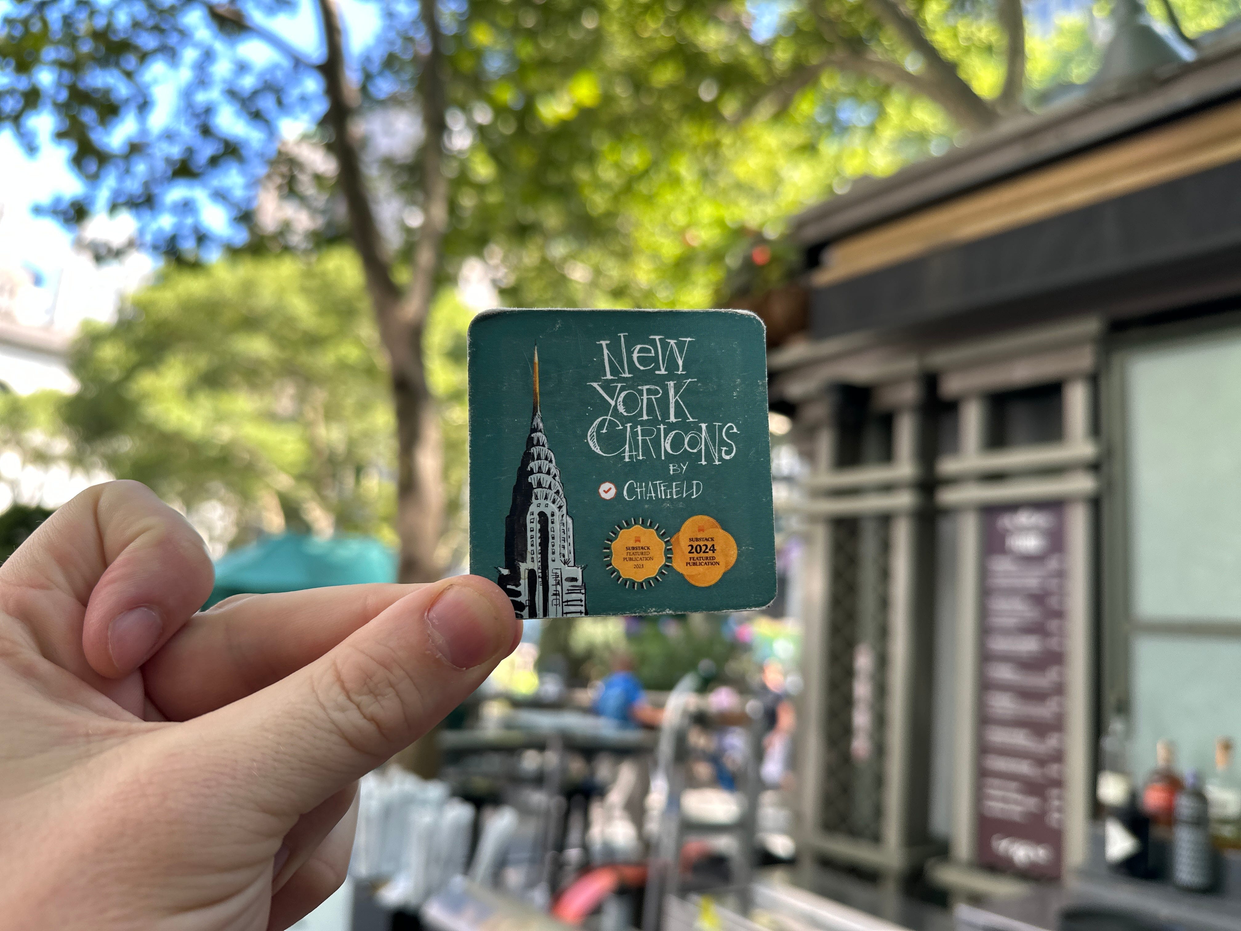 Welcome to Issue #449 of New York Cartoons. As I’m writing this, the sun is out in New York, the birds are chirping, the chairs in Bryant Park are all full of people, all making the most of what remains of our limited summer weather, and I’ve been leaving these things all around the city, with… mixed results.