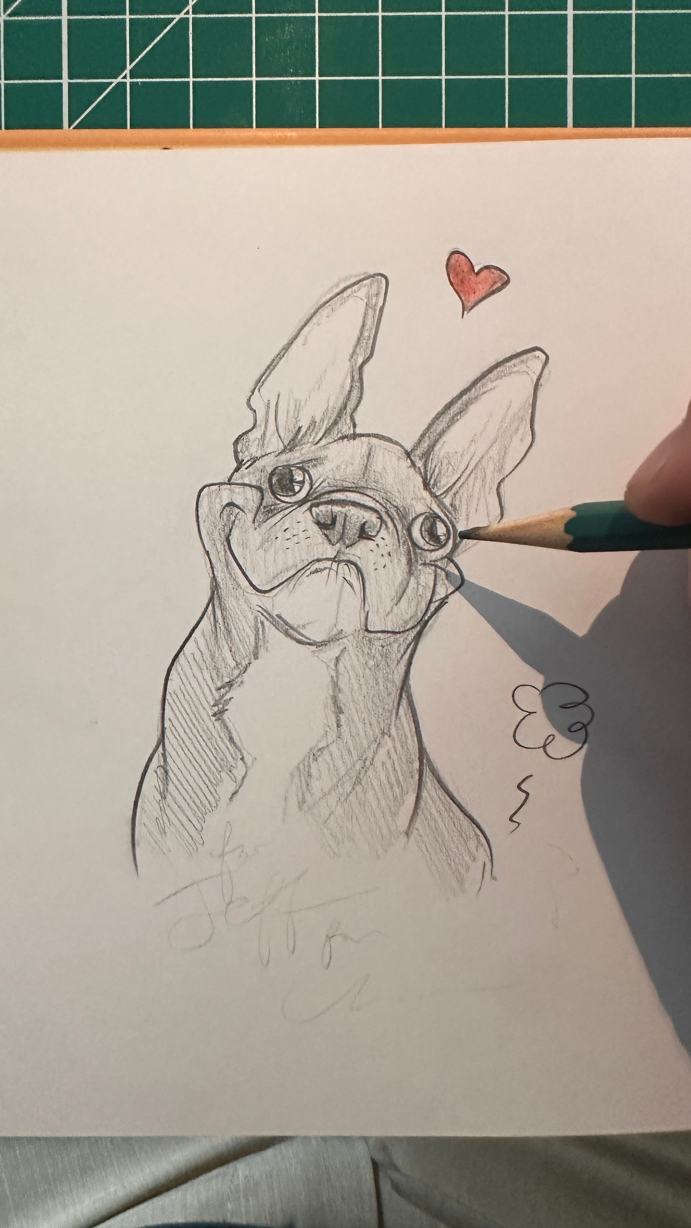 The Sketchbook I’m sharing with you this week is a selection of the sketches I did of people’s dogs as gifts this past week. If you have a friend with a dog, send me a photo and I’ll draw them into the book for you.