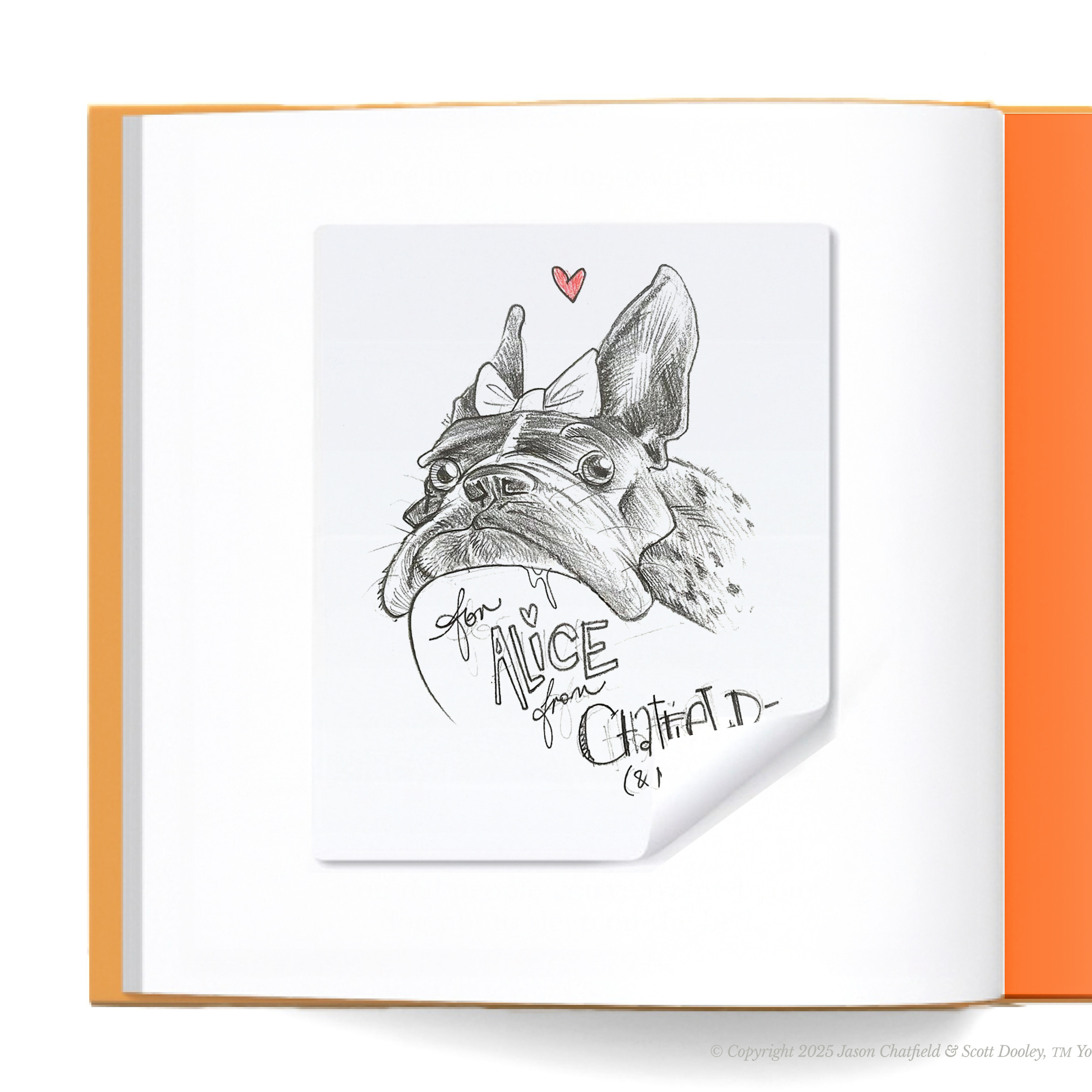 By the way, if you’ve already ordered a book and still want to have a sketch of your pooch on the inside cover, you can order a signed bookplate on adhesive paper to stick in your copy. Just click here and send me some photos of your pup!