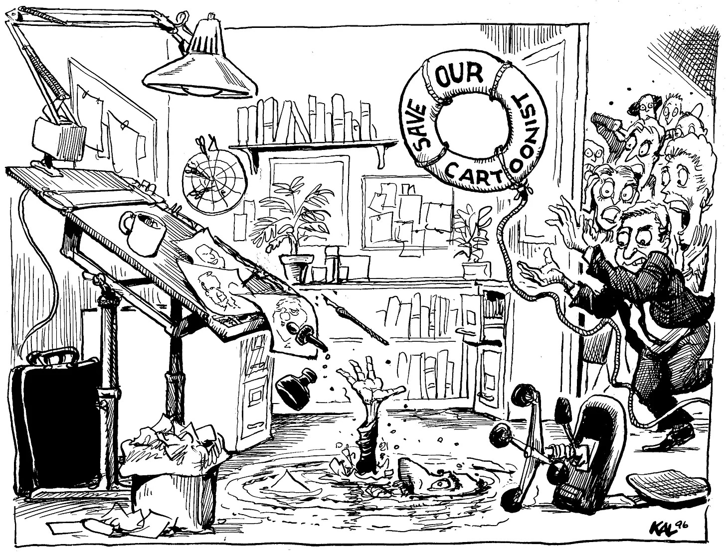 Welcome to Issue #452 of New York Cartoons. I’m back in New York City traffic, fresh back from the Labor1 Day long weekend in Baltimore, where I got to grab lunch with my old pal and prolific editorial cartoonist, Kevin “KAL” Kallagher.