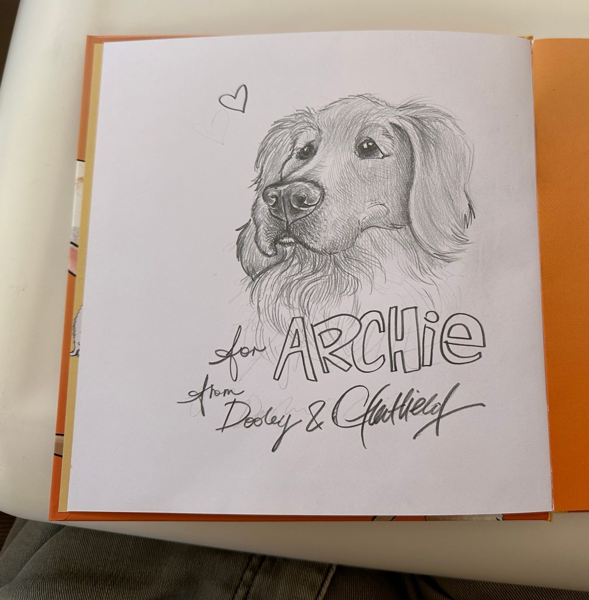 Among the good boys and girls I got to meet this past week (Hi, Dexter!) I had the ridiculous pleasure of meeting this stunning little pooch at the local florist— Archie! Archie is the goodest of boys, and possibly the friendliest dog in the world. I drew him a scribble in the new book as a gift for his owners.