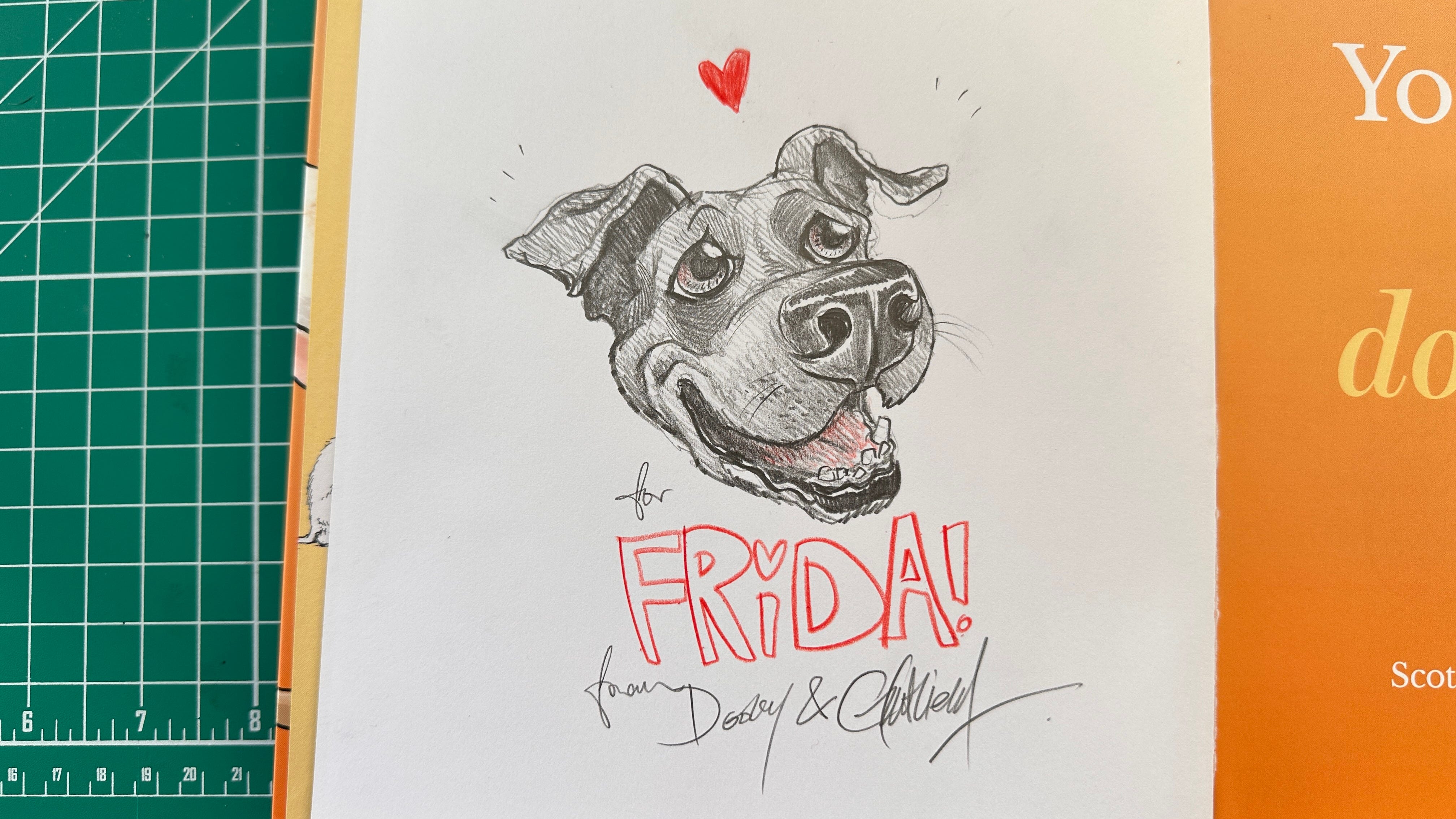 The Sketchbook I’m sharing with you this week is a selection of the sketches I did of peoples’ dogs as gifts this past week. If you have a friend with a dog, send me a photo and I’ll draw them into the book for you.