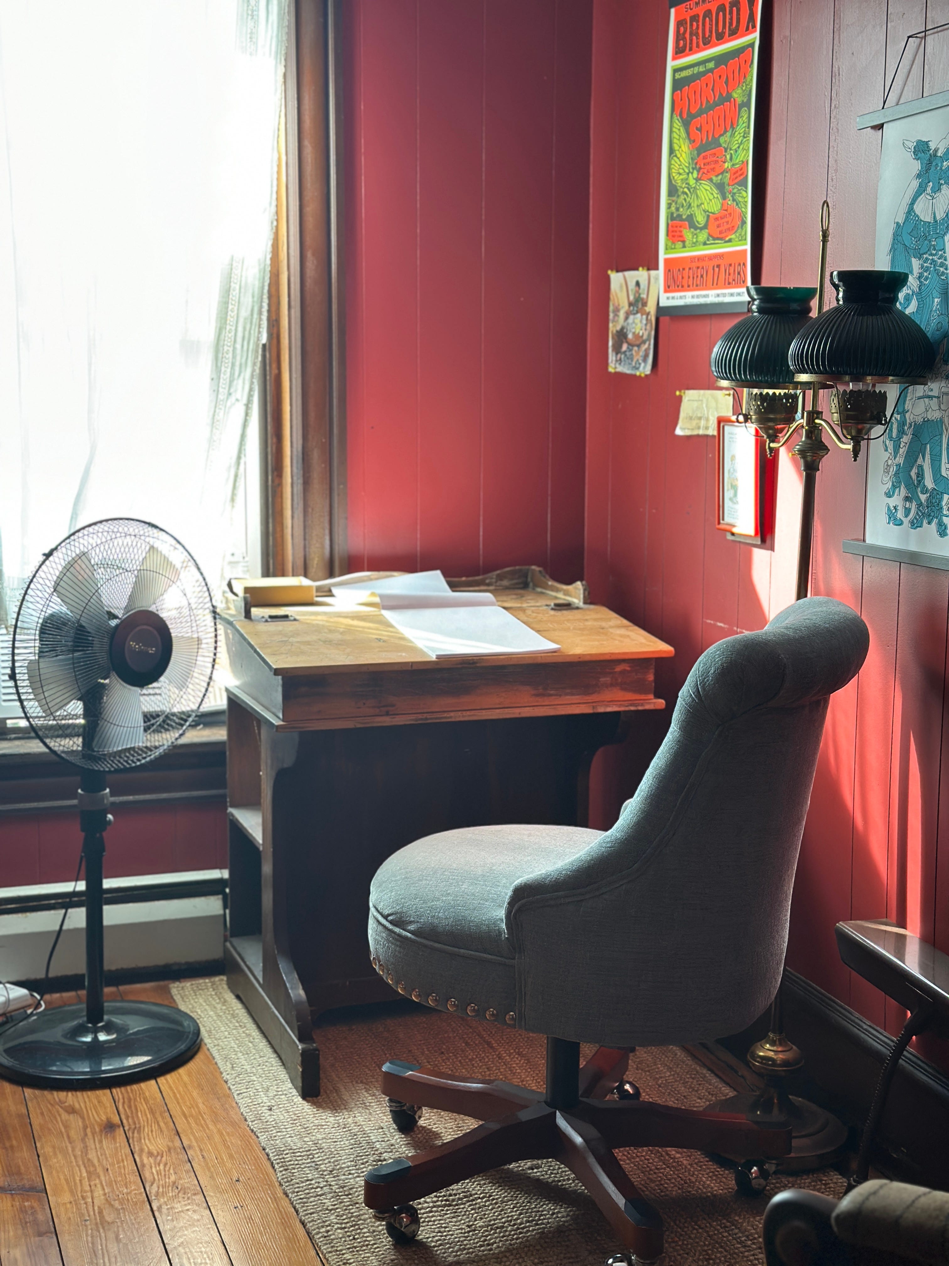 Emily Flake—New Yorker cartoonist, saint, and benevolent landlord of the St. Nell’s Writers Residency—told me and a couple of other comedians that we could have a small room for a week. A little monastery for comedy writers. Because if there’s one thing comedy writers need, it’s confinement. The other two comics hit a snag with their rental car back in the city and couldn’t make it until later in the week, so for now, it’s just me and my cavernous skull sharing a room.