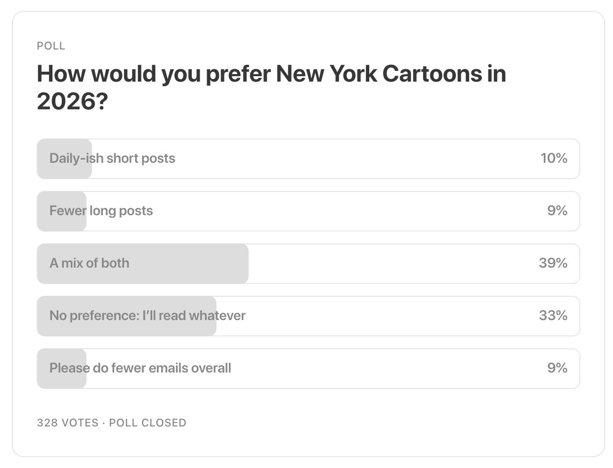 So, you can expect to hear from me in both short and long-form at various junctures throughout your week, in both written, hand-drawn and video formats. Huzzah and good day. I’ve got some really big things planned for this Substack for 2026, so keep your eyes peeled and your inbox open!