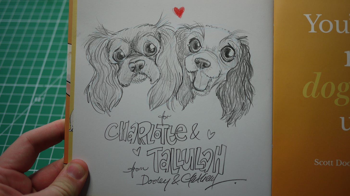 The Sketchbook I’m sharing with you this week is a selection of the sketches I did of peoples’ dogs as gifts this past week. If you have a friend with a dog, send me a photo and I’ll draw them into the book for you.