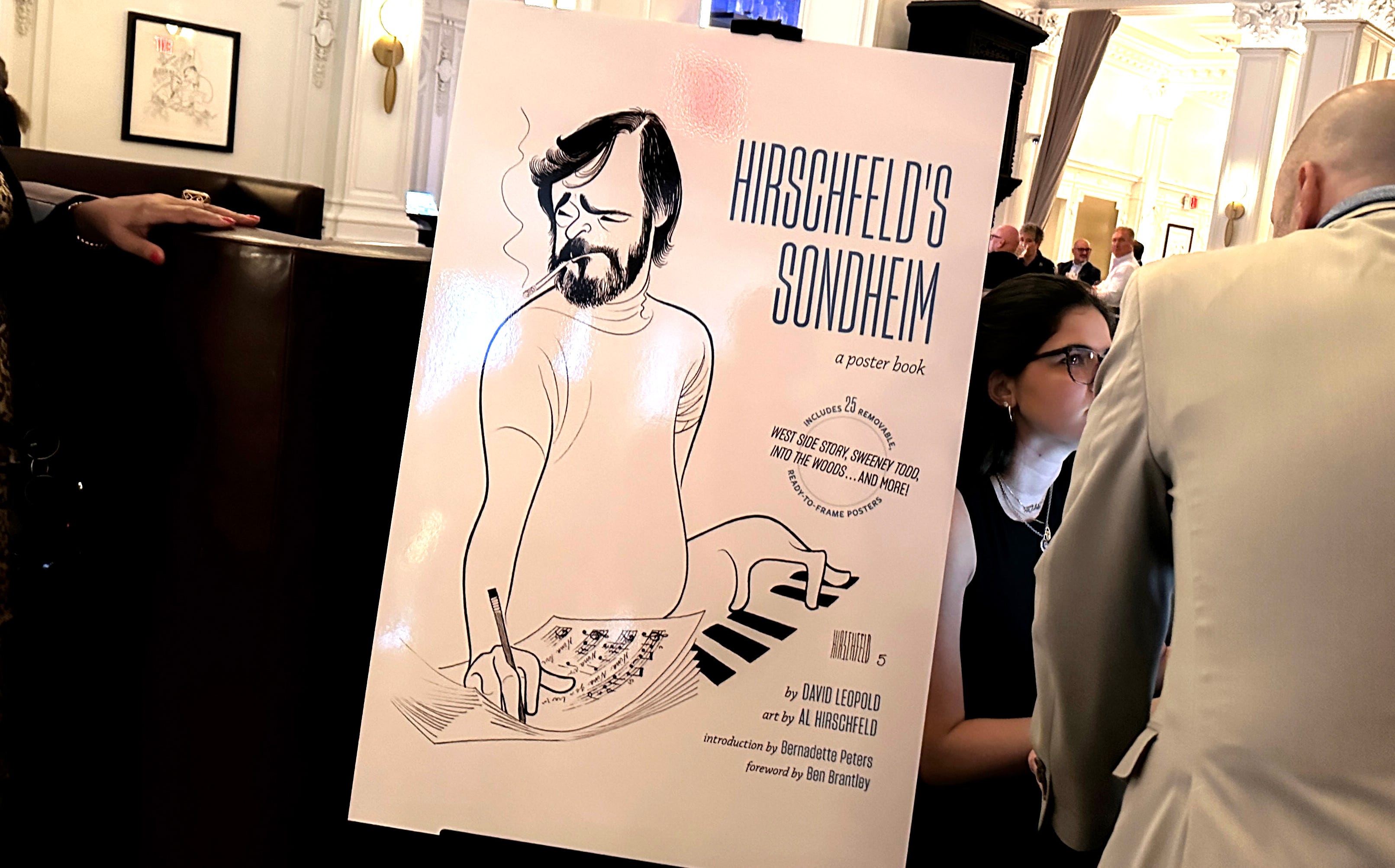 Tonight, I was invited to the Al Hirschfeld reception at the Algonquin Hotel, home of the famous Algonquin Round Table. We were celebrating both the new poster book about Hirschfeld’s work on Sondheim shows and the collection of his iconic work. This is the first NYC gallery showing of Al Hirschfeld’s work in over a decade.