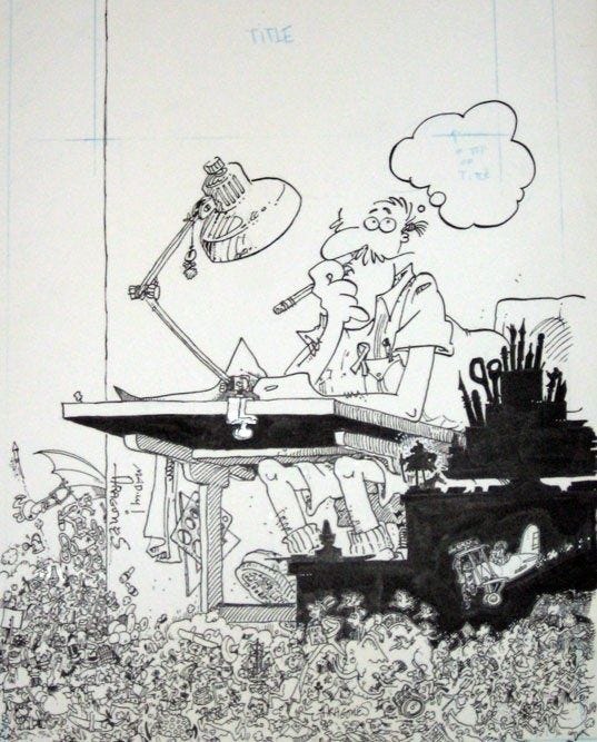 He also happens to be a brilliant storyteller in person. His account of killing Marty Feldman (allegedly) is one of the funniest things I’ve ever heard in my life. I was crying laughing at his accounting of the incident to his fellow cartoonists in Memphis one year.