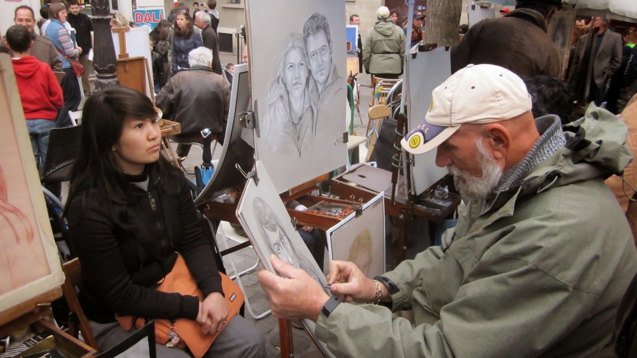 Dozens of artists, caricaturists, portrait painters, landscape painters all with their easels propped next to one another - samples of their work (and in some cases, other peoples’ work) presented proudly at their stand, enticing passing tourists to trade a hefty wad of Euros for a one-off piece of art.