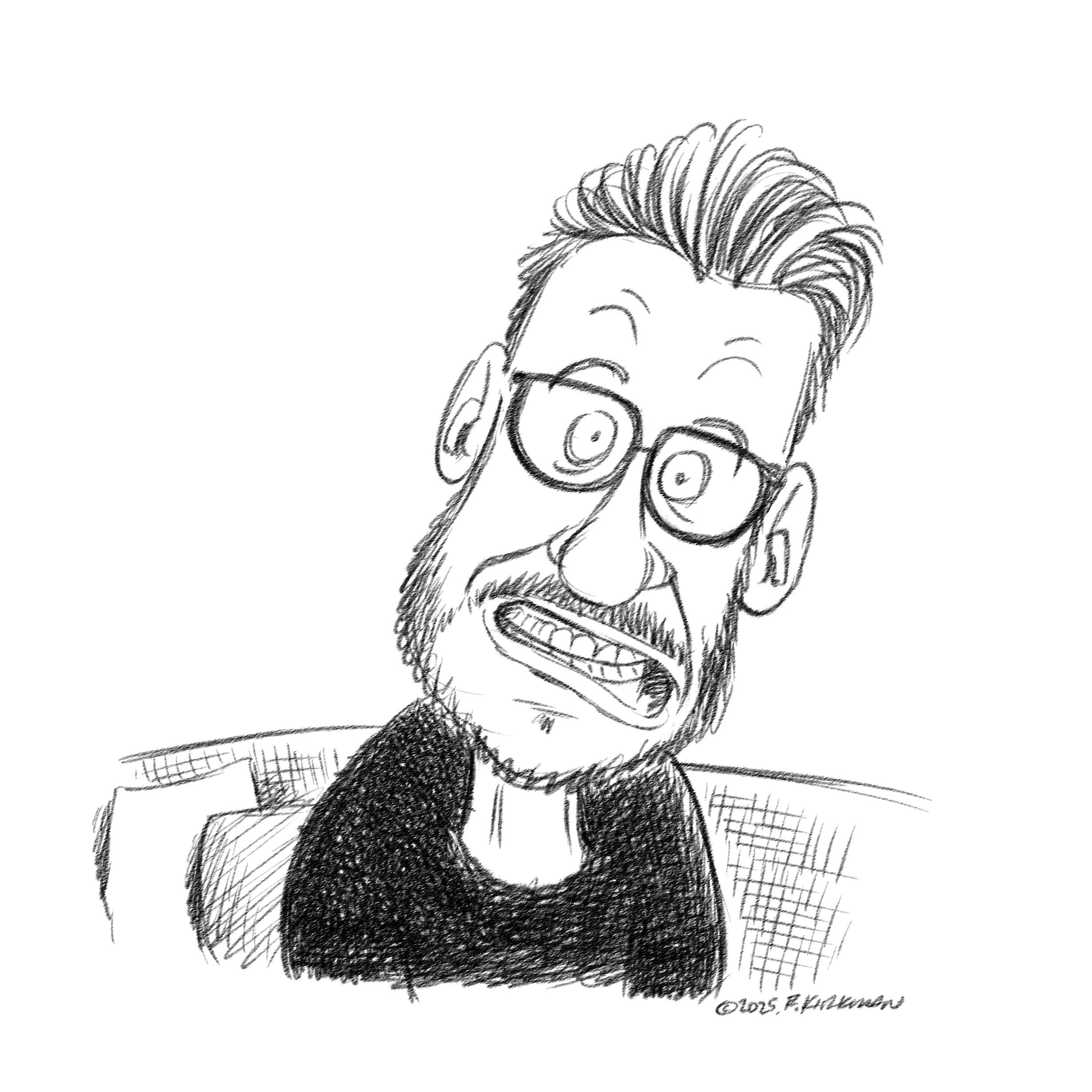 Thanks to Baby Blues cartoonist Rick Kirkman for his sketch of my ridiculous face from the above video thumbnail. It arrived in an email with the subject line “Ever see something you just HAVE to draw?”