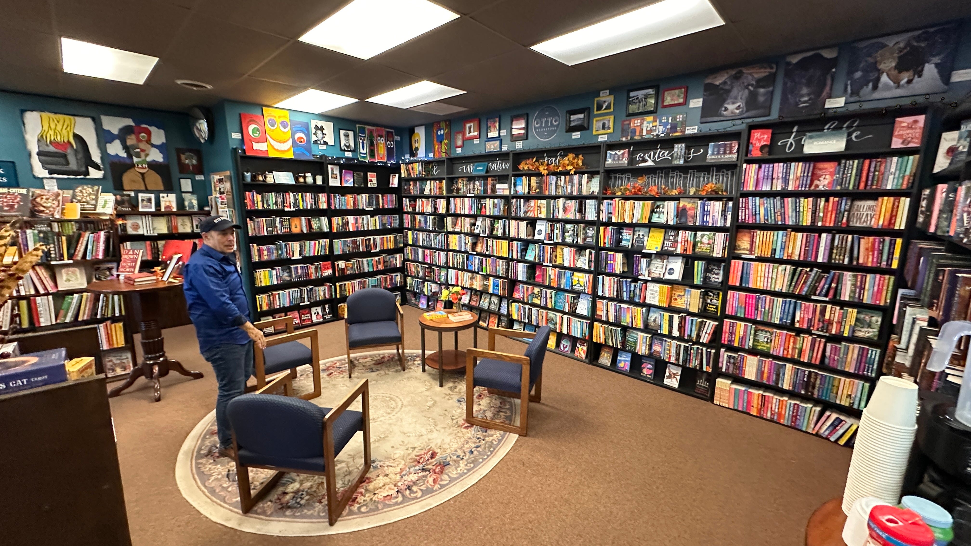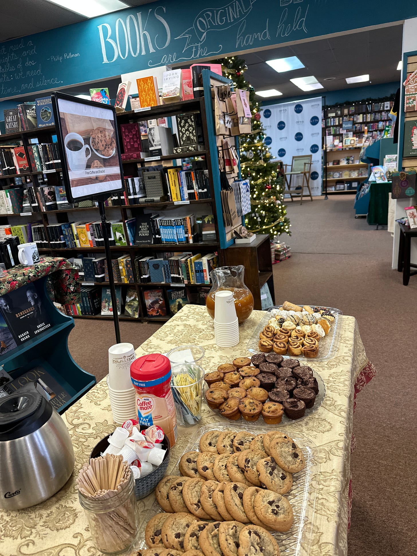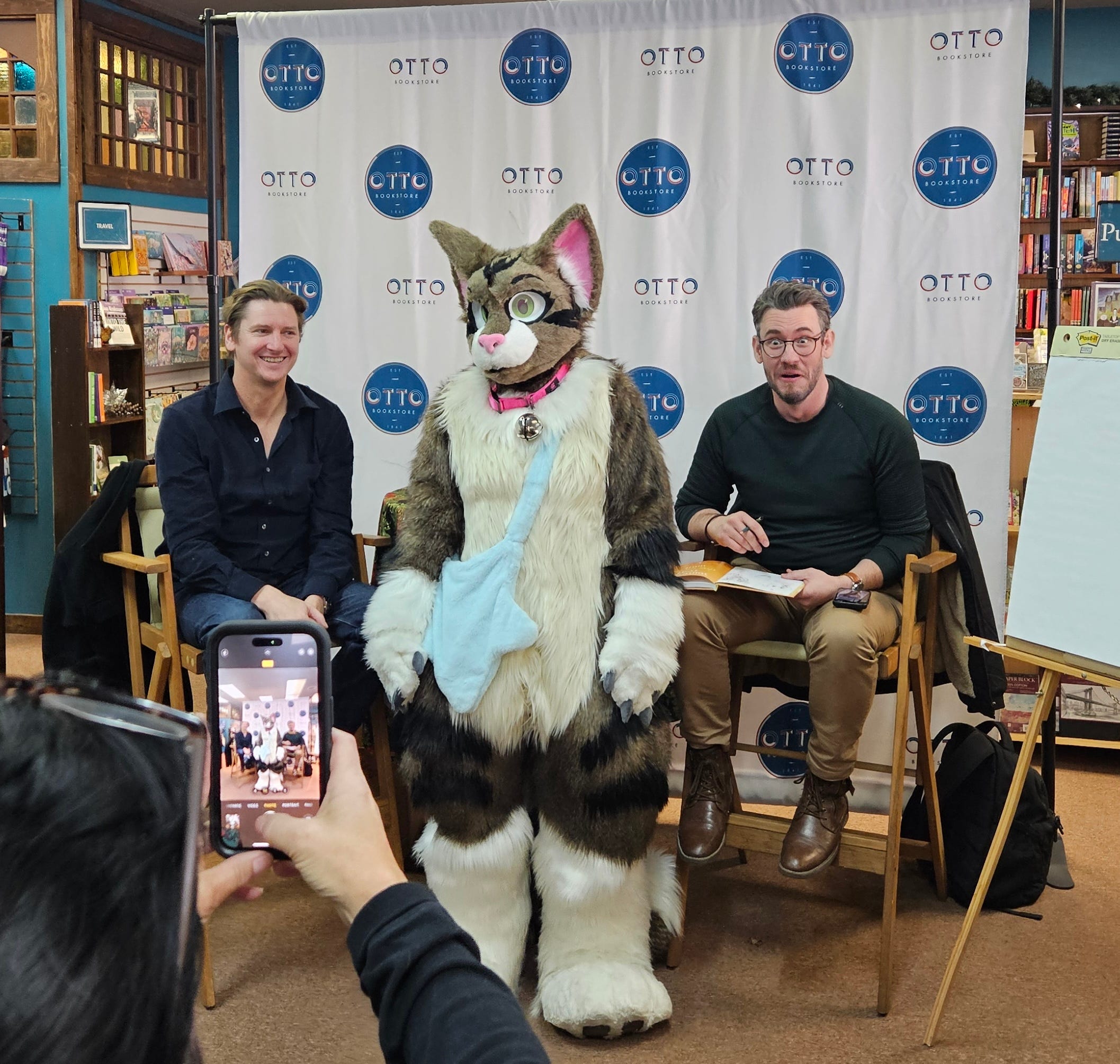 , apparently, stayed there the same night with her boyfriend, but we were ships in the night. Or more accurately: two ships who checked in, ate snacks, and fell asleep fully clothed. They got in around 1am, by which time Scott and I were passed in our rooms —he, with his laptop on with a live stream to the cricket, and me with several old issues of the New Yorker with articles I’d been ‘meaning to get to’ for seventeen years.The next morning, we groggily rolled into the Sawhorse Café to inhale coffee and eggs, marched to Otto’s Bookstore, and met with the most charismatic bookstore owner since Meg Ryan in You’ve Got Mail. He’d set the place up beautifully, with a big banner, stacks of books for us to sign, hot coffee and pastries, and our books in the windows. He made us feel like royalty— and had some of the greatest publishing industry stories I’ve ever heard. Truly a legend.