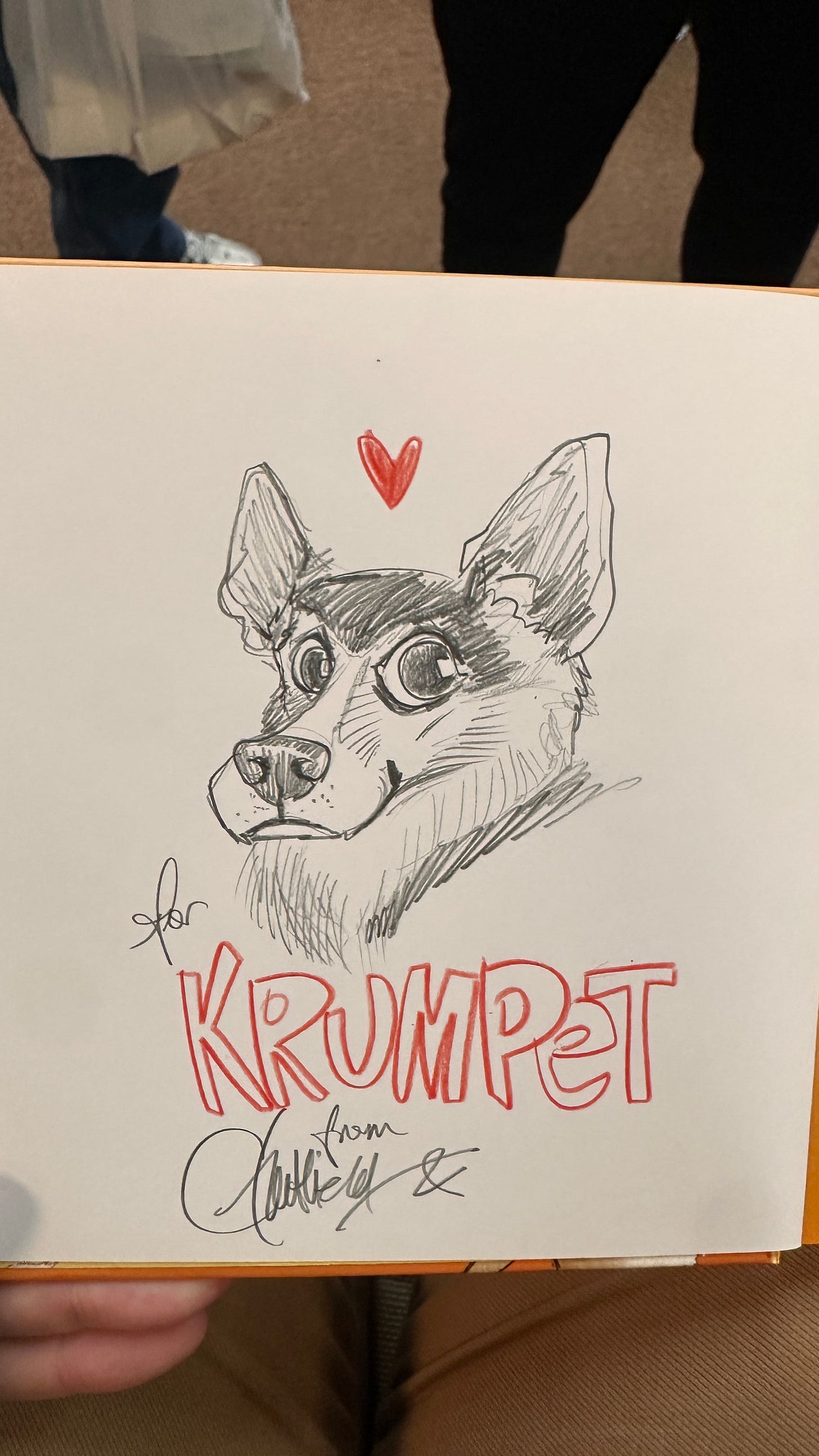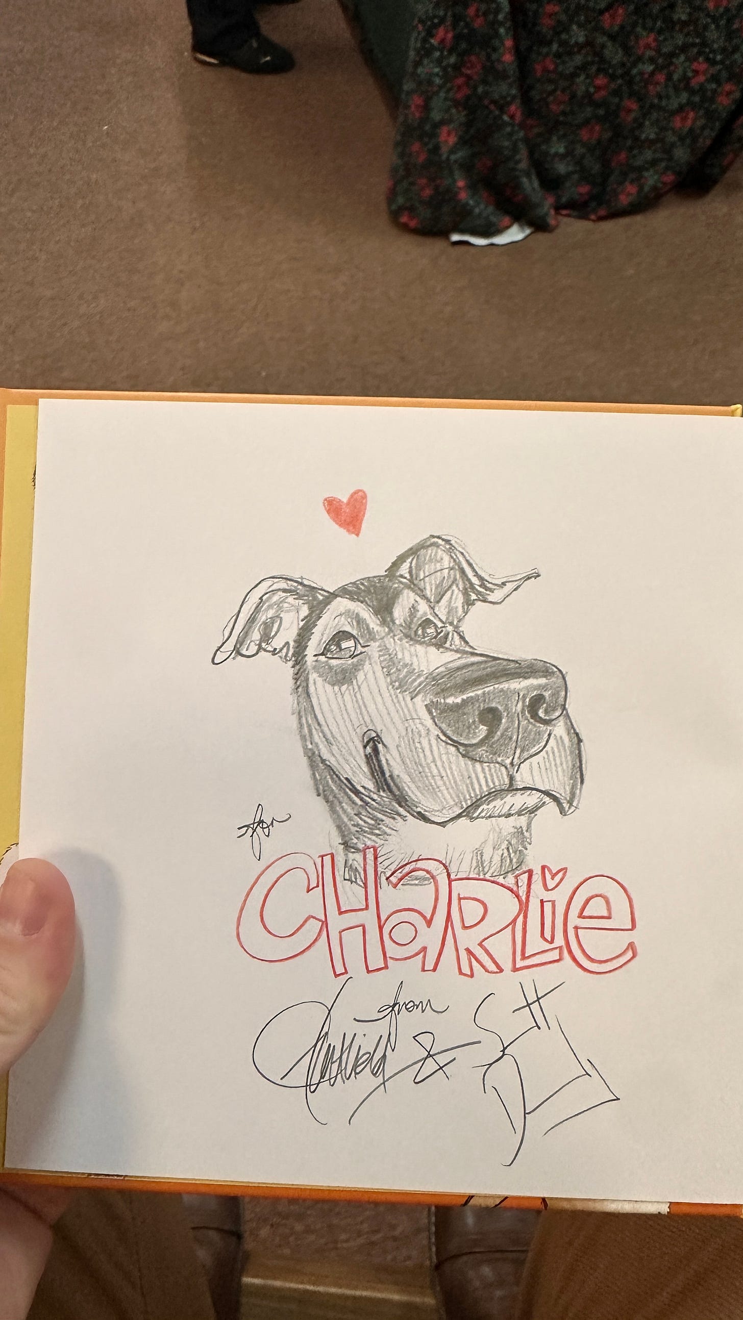 A couple of local animal rescue organisations set up in front of us as the doors burst open, the entire town shuffling through with their puppers and doggos to get their signed copies with sketches of their furbabies.