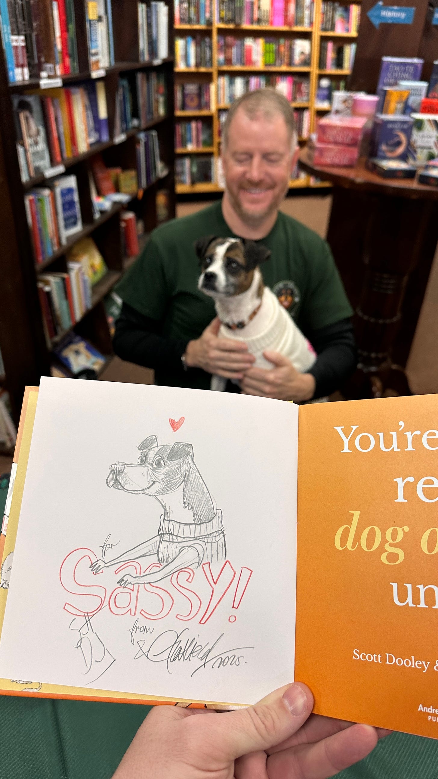 By the end of the day, my hand had contorted into a permanent claw from drawing so many Labradoodles. Scott had developed a thousand-yard stare that only appears in men who have been asked to dedicate a book to a Scradoodle named Krumpet, or a three-legged Jack Russell named Sir Poopington.
