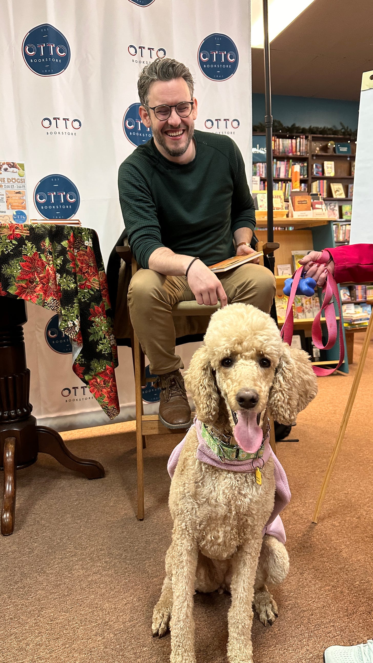 I immediately began signing and drawing dogs at a pace that suggested we feared punishment if we stopped. The town showed up. The dogs showed up. John, who runs Otto’s, treated us like visiting dignitaries. For one glorious day, we were kings. Kings surrounded by Corgis, but kings nonetheless.