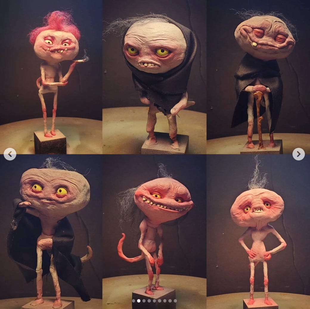 We also talked about the heartbreaking reality of having your brilliant, original ideas crushed by history. Kyle recently published a gorgeous book called The Garden Witch. Initially, he planned to build 50 sets and photograph his sculptures for it, like a lost stop-motion film. When that turned out to be a logistical nightmare, he asked the publisher if he could just do it in watercolour and ink instead. They said yes, and asked if he knew how to paint with watercolours. He lied, said yes, and immediately started frantically Googling videos of Quentin Blake.