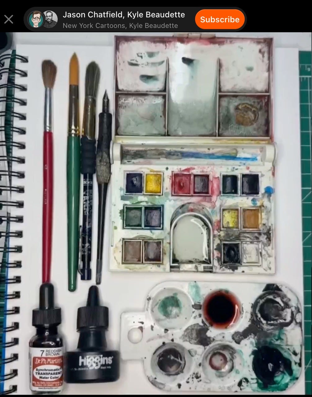 Yesterday, I finally got to open the folder and talk to the man himself on Draw Me Anything. Kyle joined me from the frozen expanses of Canada (a fellow Commonwealth resident) for a conversation about the creative process, the horror of social media and AI Art, and how a tin of brown watercolour paint accidentally ruined his life.