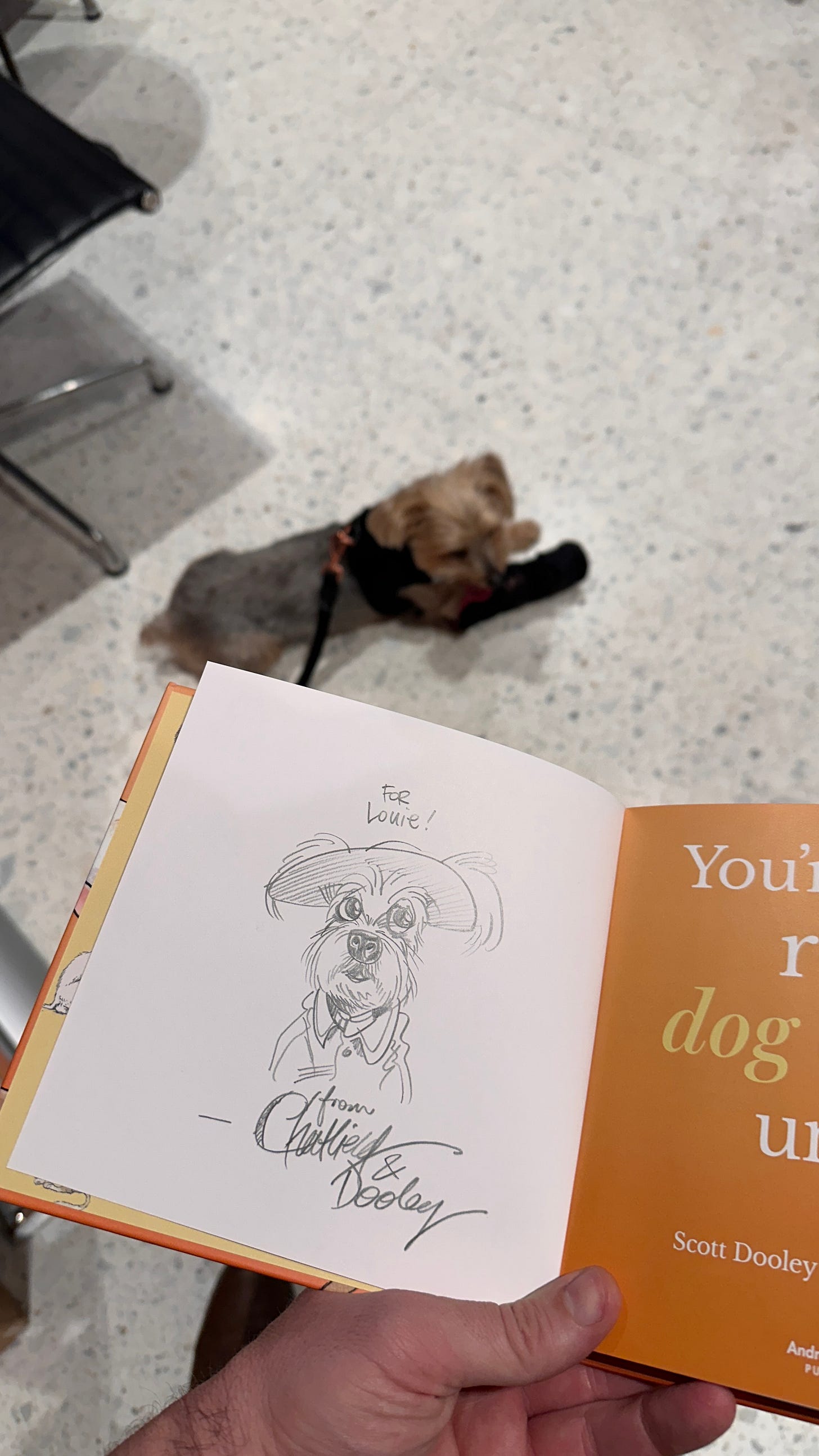We got to sign a heap of books, complete with drawings of everyone’s pups in the inside cover, and even got a surprise cake made featuring the dogs from the book all over it. Big thanks to our brilliant agent, Nicole Resciniti, for arranging it and shoutout to @Baked.By.Blue for the incredible attention to detail on the cake!