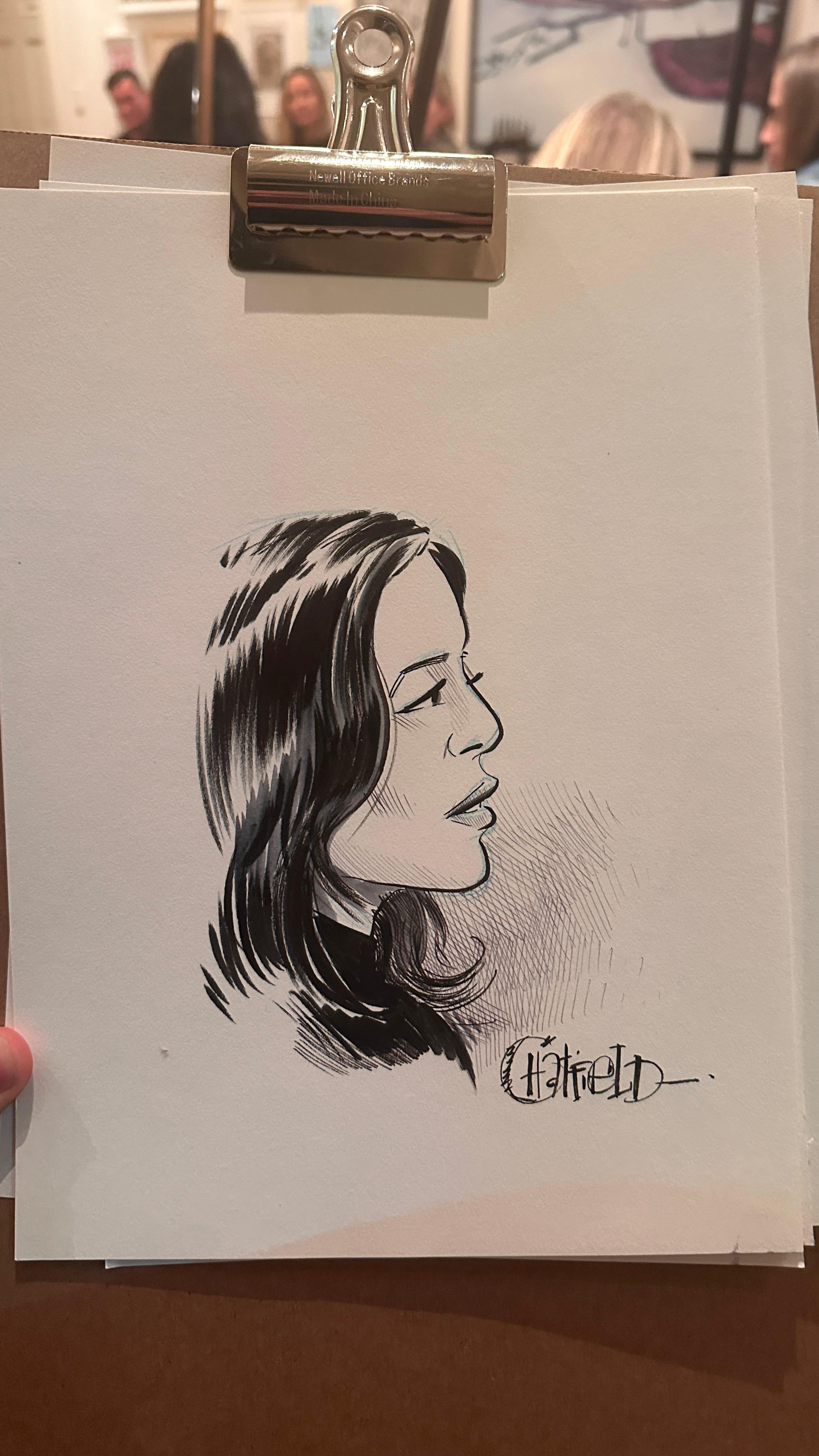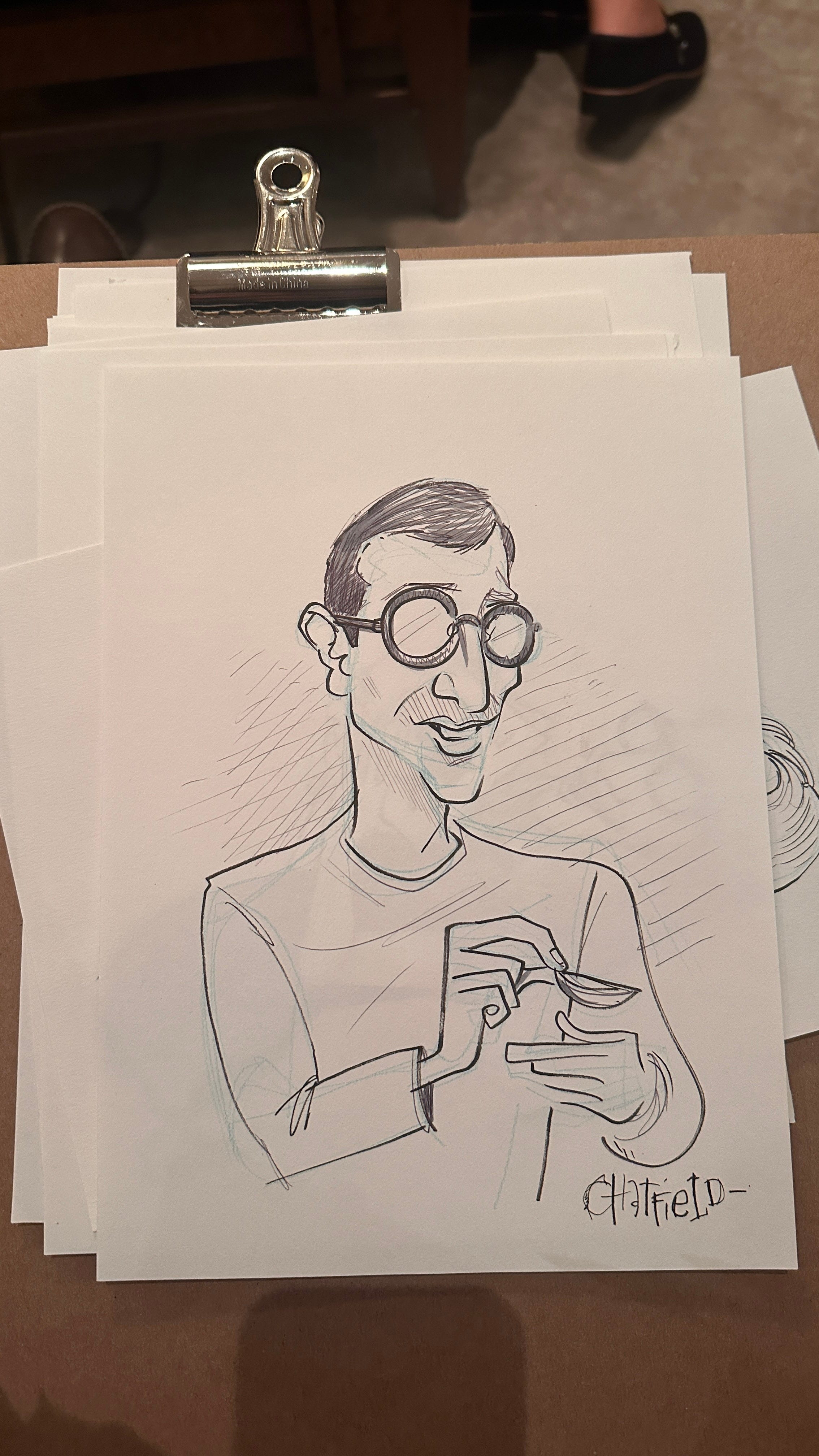 As people mingled, I started handing out the portraits. Reactions ranged from “Oh my god, that’s me!” to the more existential, “Oh my god. That’s… me?” One woman stared at her portrait as if it had unlocked a memory she wasn’t ready to process. Another asked if I could “just make her look a little more like herself,” which is art director code for erasing the chin.