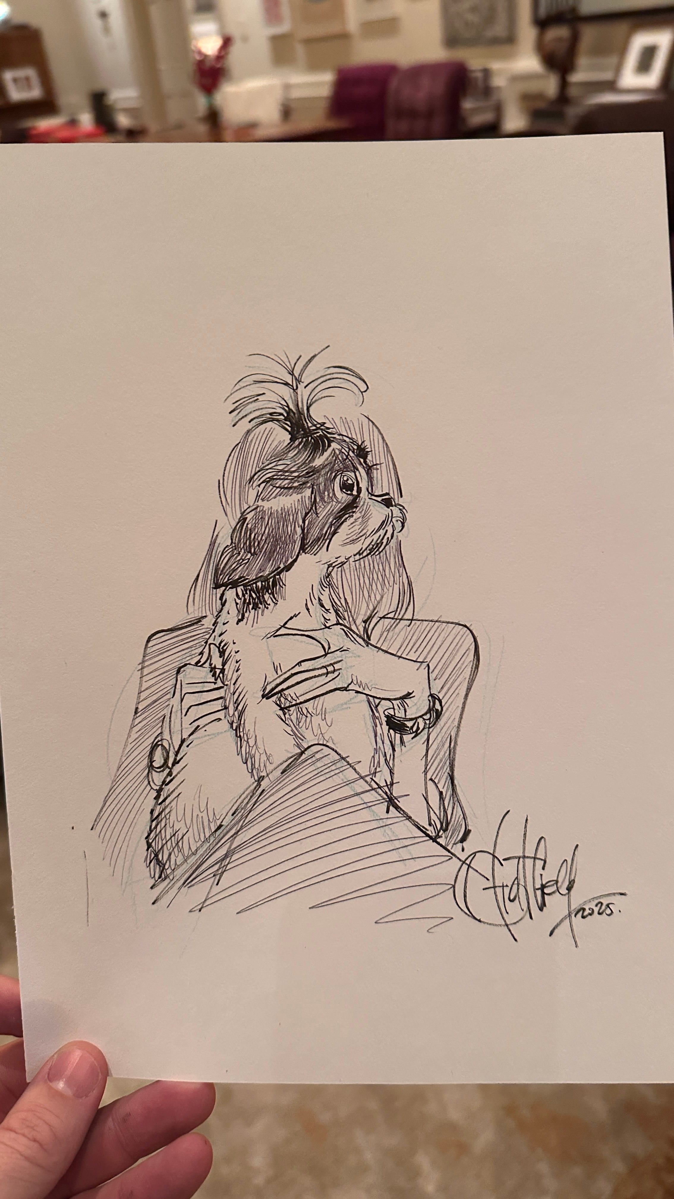 By the end of the night, my lap was covered in ink stains and my hand had stopped moving properly. I’m not sure if it was the RSI or the scotch. Deborah thanked me warmly, Sophie gave me one final sniff of approval, and Lou clinked my cup, knowing full well I’d be slinking back downtown to my drawing board that night to finish a very intense deadline on something we’ve both been working away on. I’ve been pulling late nights to get it done just right. (I can’t wait to show you next week!)