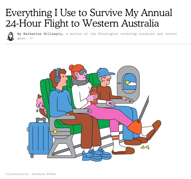 The article going around right now by fellow Perth-born New Yorker, Katherine Gillespie about curing jetlag and surviving this epic journey, offers a lot of sensible advice. Light exposure. Strategic naps. Melatonin. Hydration. Movement. All excellent in theory. In practice, I moved to New York eleven years ago and now exist in a permanent state of temporal confusion; My body thinks it’s 2009. My phone thinks it’s Tuesday. My soul knows it’s time for a meat pie.