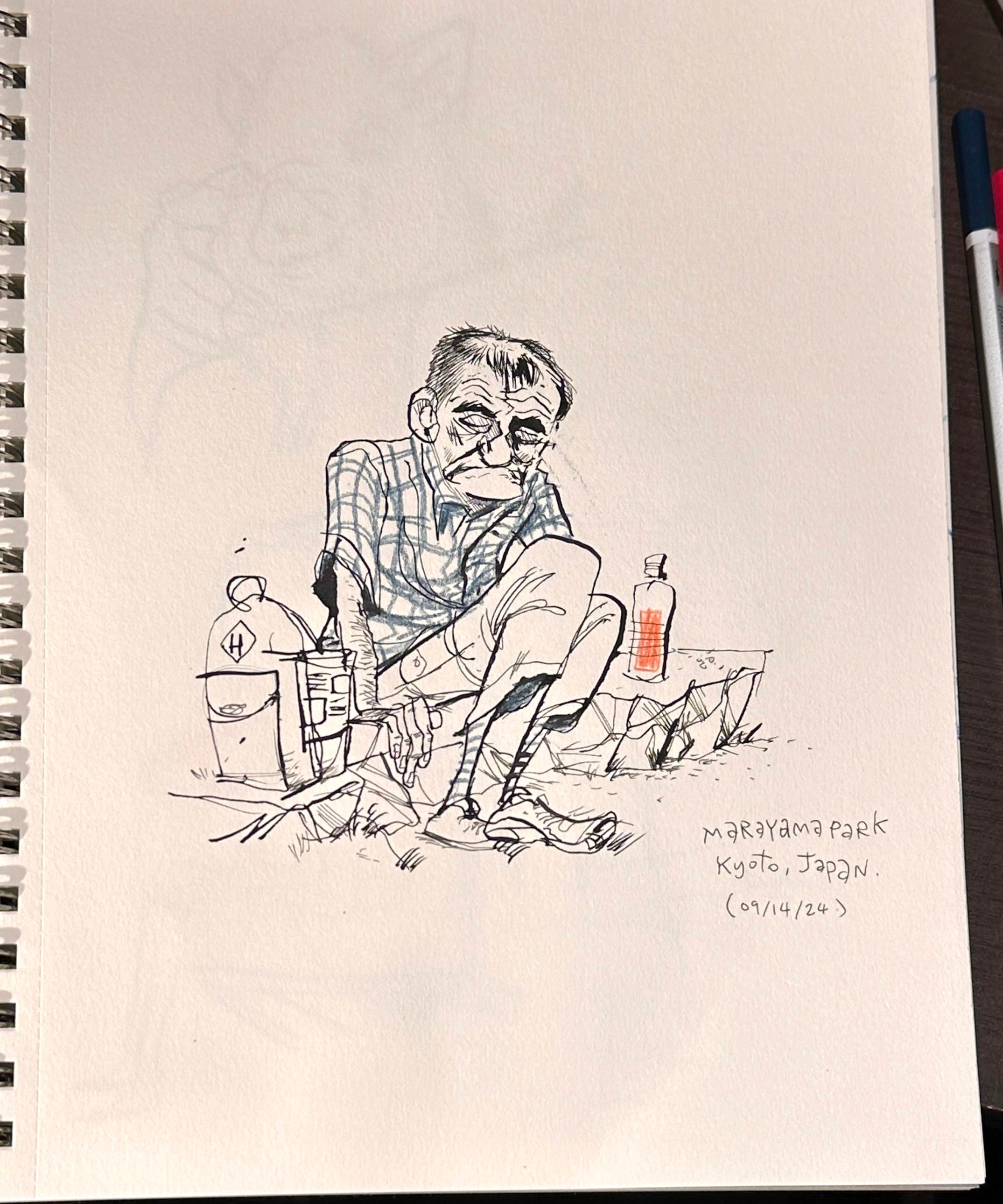 Wandering through the steaming hot Maruyama Park today, I stopped to make a few sketches, snapped some photos for drawing later, and got very excited about some new charcoal ink I’d been gifted from my artist friend, Yoshi-san.