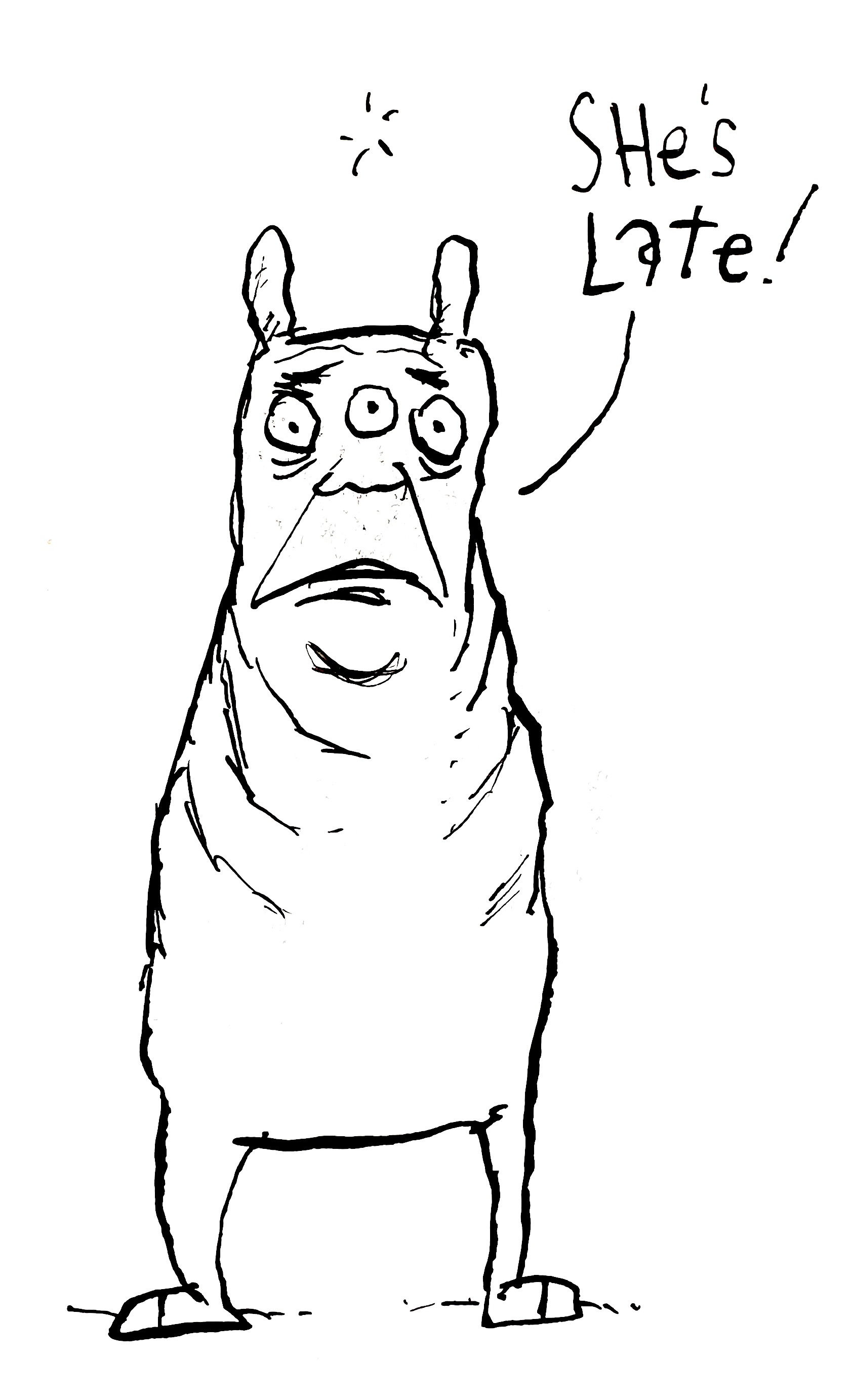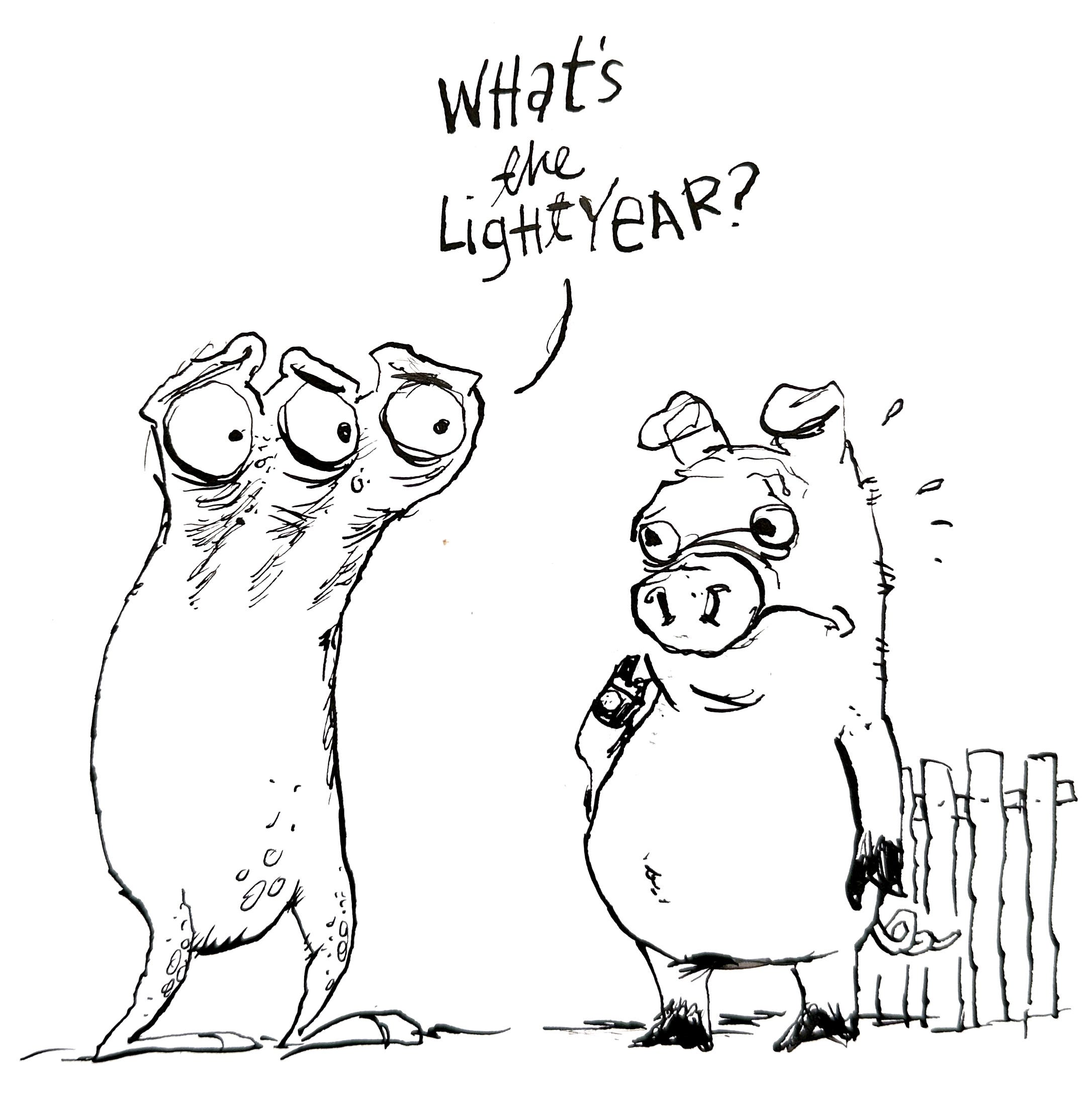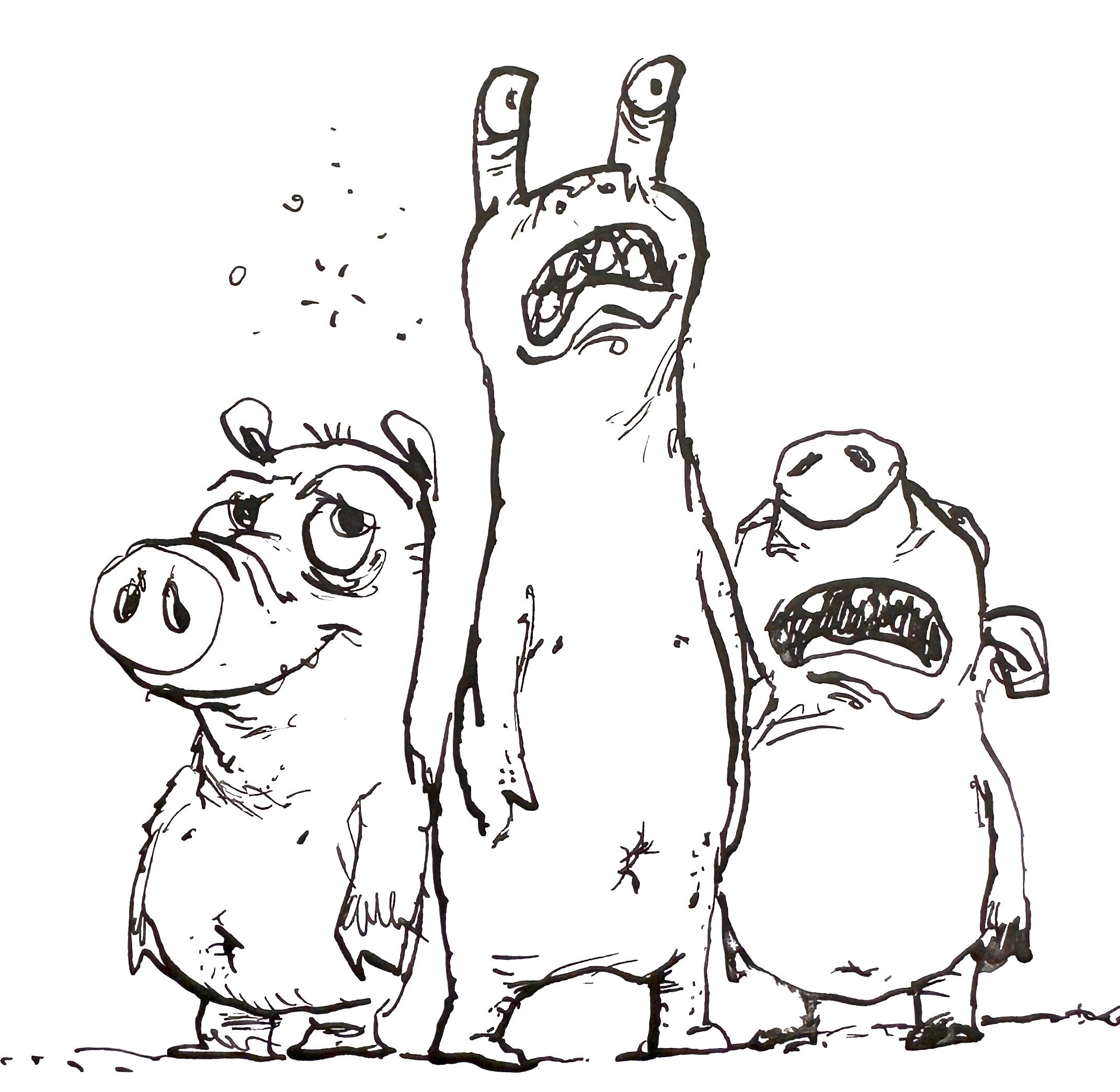 Dan McConnell in the chat requested "a three-eyed alien asking a pig for the time," which sounds apolitical until you remember that everything can be political if you squint hard enough. Or if you're drawing pigs, which, as someone pointed out, could be very Orwellian.