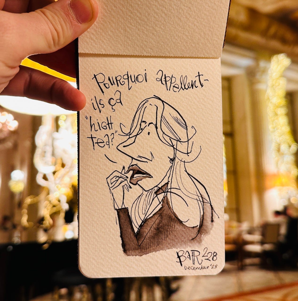 Eavesdrawing the patrons and staff at The Plaza Hotel of Paris