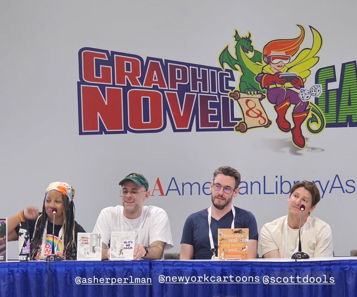 Welcome to Issue #445 of New York Cartoons. I’m still shaking off the buzz from my weekend in Philly at the American Library Association conference, where I got to meet not only the most enthusiastic book lovers on Earth but also a buttload of fellow authors and artists with books out!