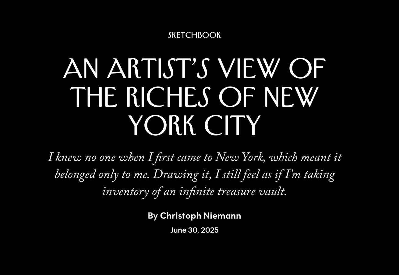 for pointing me to Christophe Neimann’s incredible peice in the New York Times about his changing relationship to Art since the introduction of AI-Generated Art. Well worth a read.You can read the whole thing here. He also did a great piece in The New Yorker below about trying to capture the spirit of New York in art. The man is a treasure. I can’t get enough of his work.