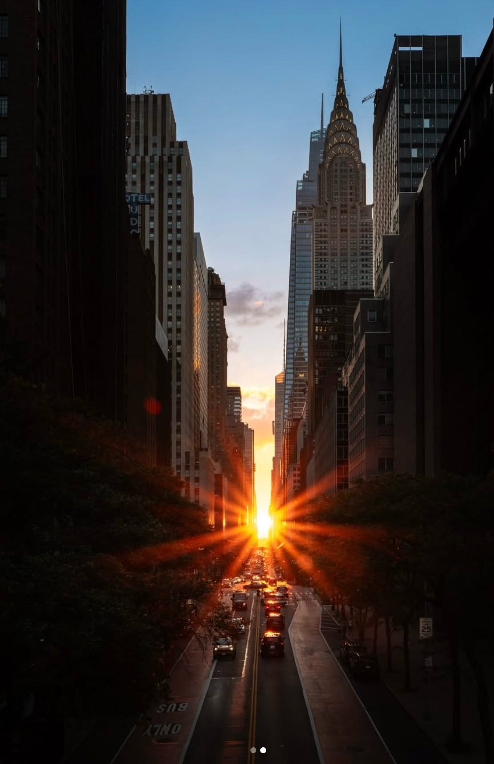This coming Friday, July 11, at ~8:20 pm, the sun will perfectly line up with the West→East streets of Manhattan for what is locally referred to as Manhattanhenge. You can still get a glimpse of it before and after that date, but technically the 29th May and 11th July are the official dates the sun lines up perfectly. The excellent photographer Dan Martland always seems to capture New York in all its ridiculous wonder. Here’s a pic he shot from the other day— Go follow his Instagram for great shots of New York at @dantvusa
