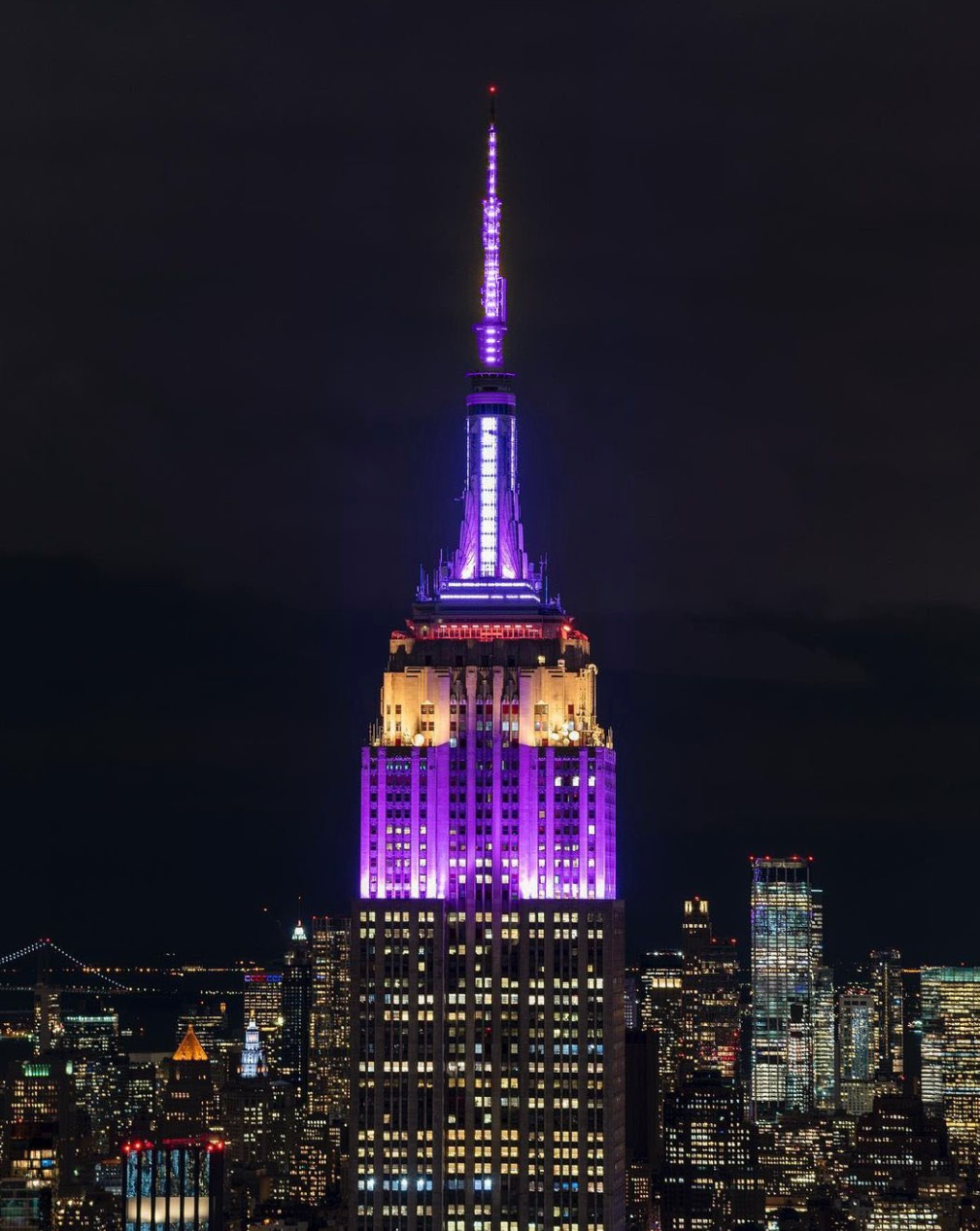 As I was trudging home through the Manhattan slush this evening, my right hand throbbing like a cartoon thumb that had been hit by a hammer, I looked up at the Empire State Building. It was glowing in regal Purple and Gold to celebrate the anniversary of one of the best events in New York. It was a majestic sight, primarily because it distracted me from the fact that my boots were slowly filling with ice water. But I was happy.