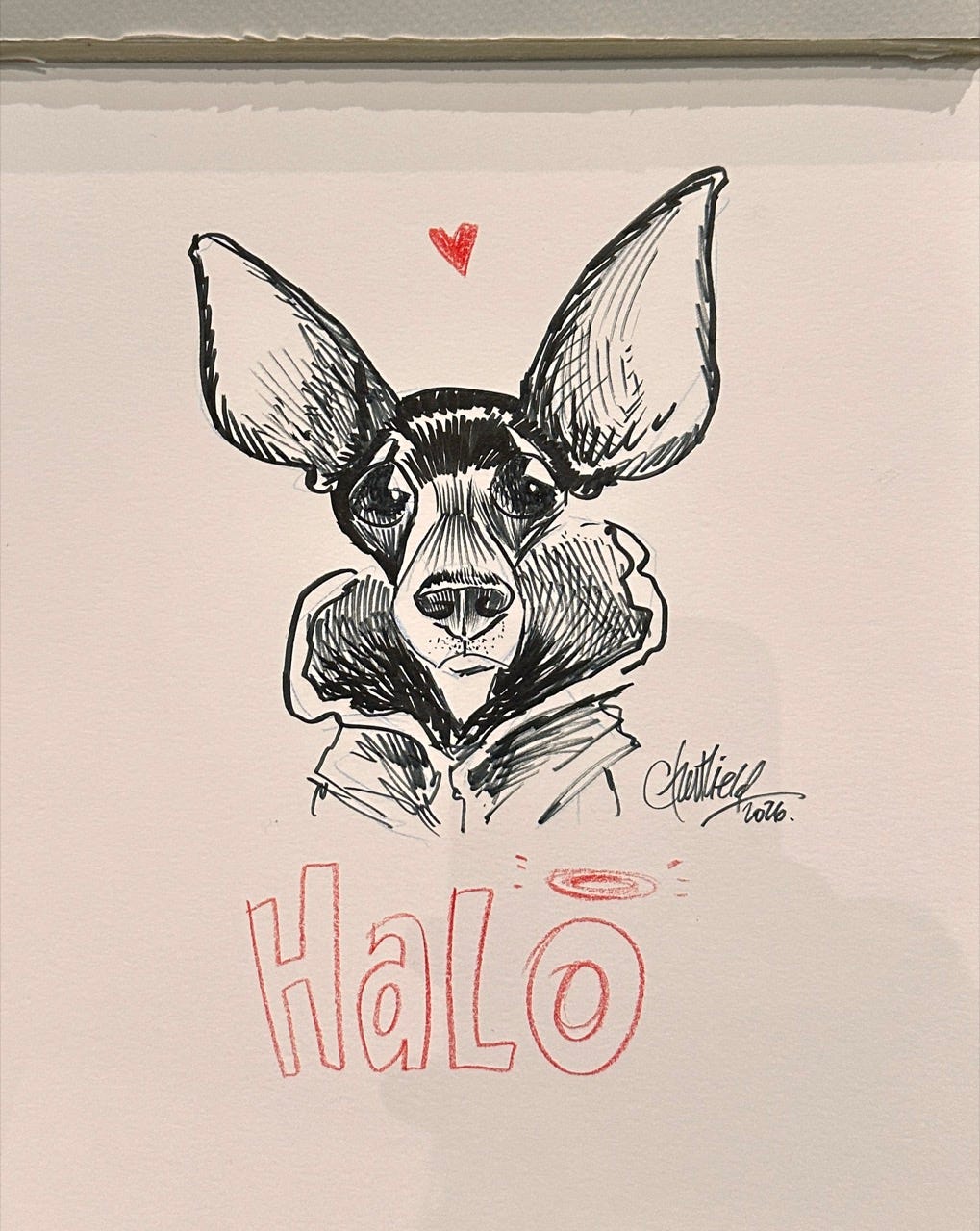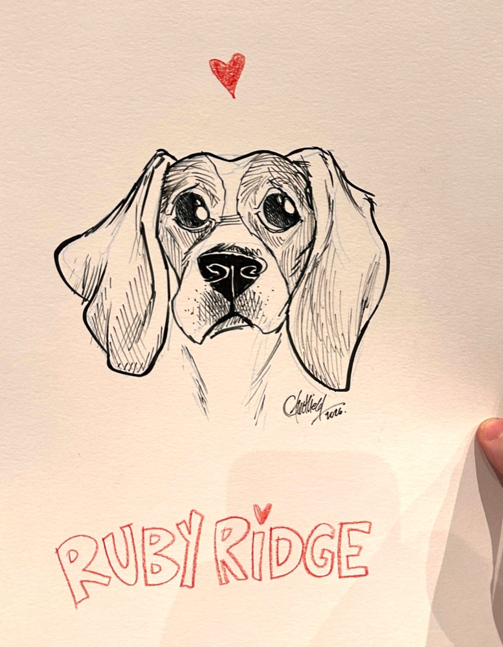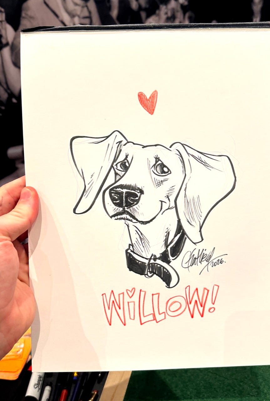 I thought I would do a few leisurely sketches as people had their official dog portraits taken next to the gigantic inflatable pup next to the booth. I was wrong. Within minutes, a line formed that didn’t break for hours. I drew Golden Retrievers, Beagles, Poodles, and things that looked like mops with pulses. I drew until I literally ran out of paper.