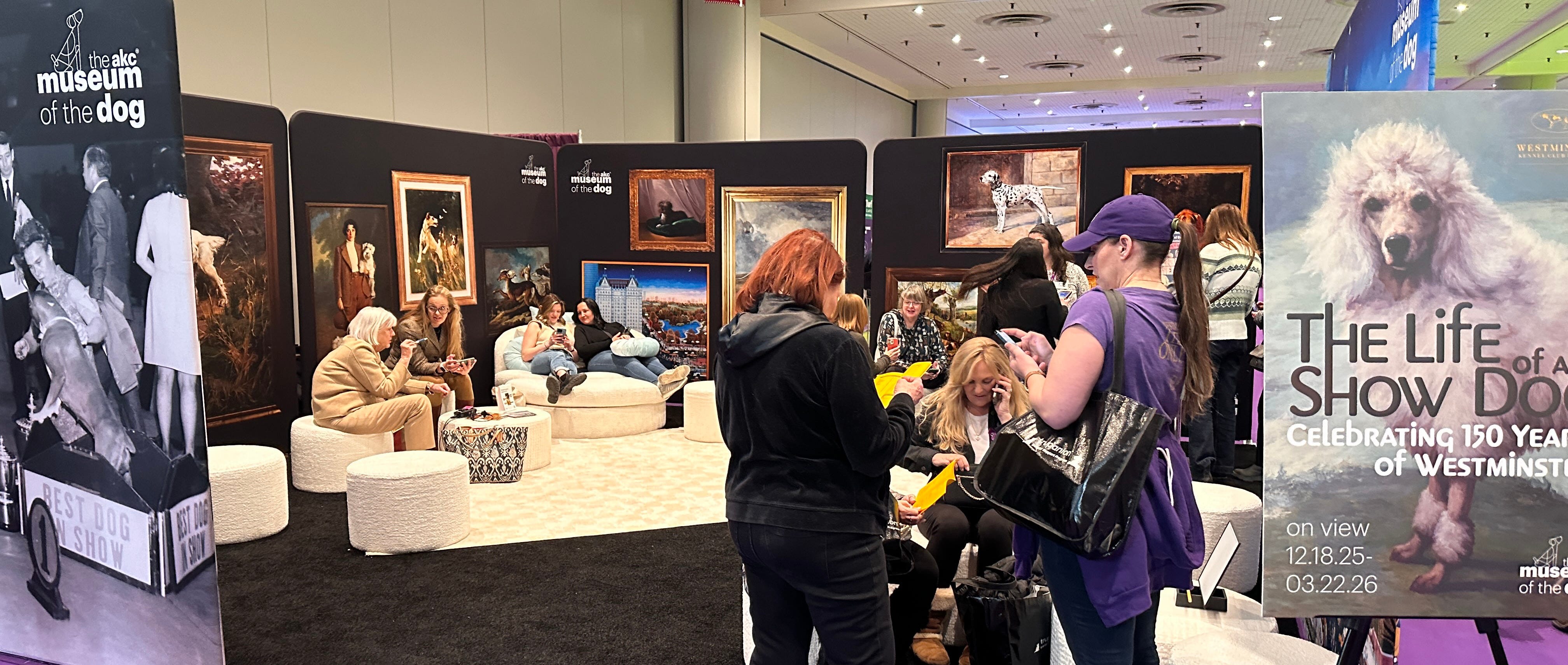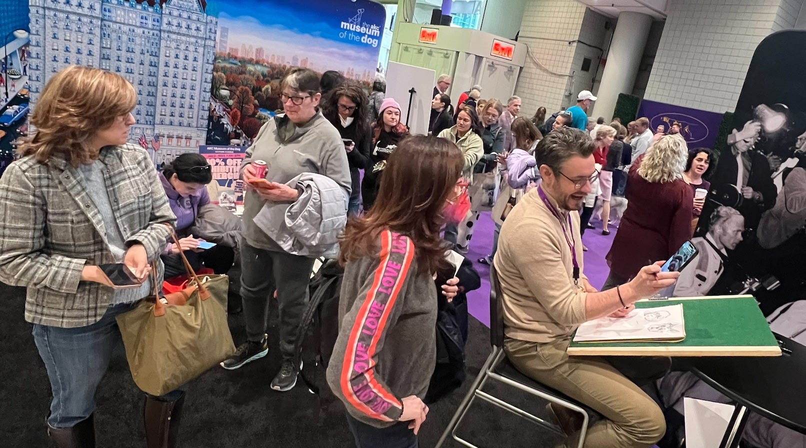 My friends at the AKC Museum of the Dog had a booth in prime position near the entrance. The museum’s president, Christopher -who owns a magnificent Newfoundland named Luca, a dog roughly the size of a Fiat 500- and the excellent Sarah Moshenberg, Manager of Learning and Engagement, set me up with a table and a stack of paper.