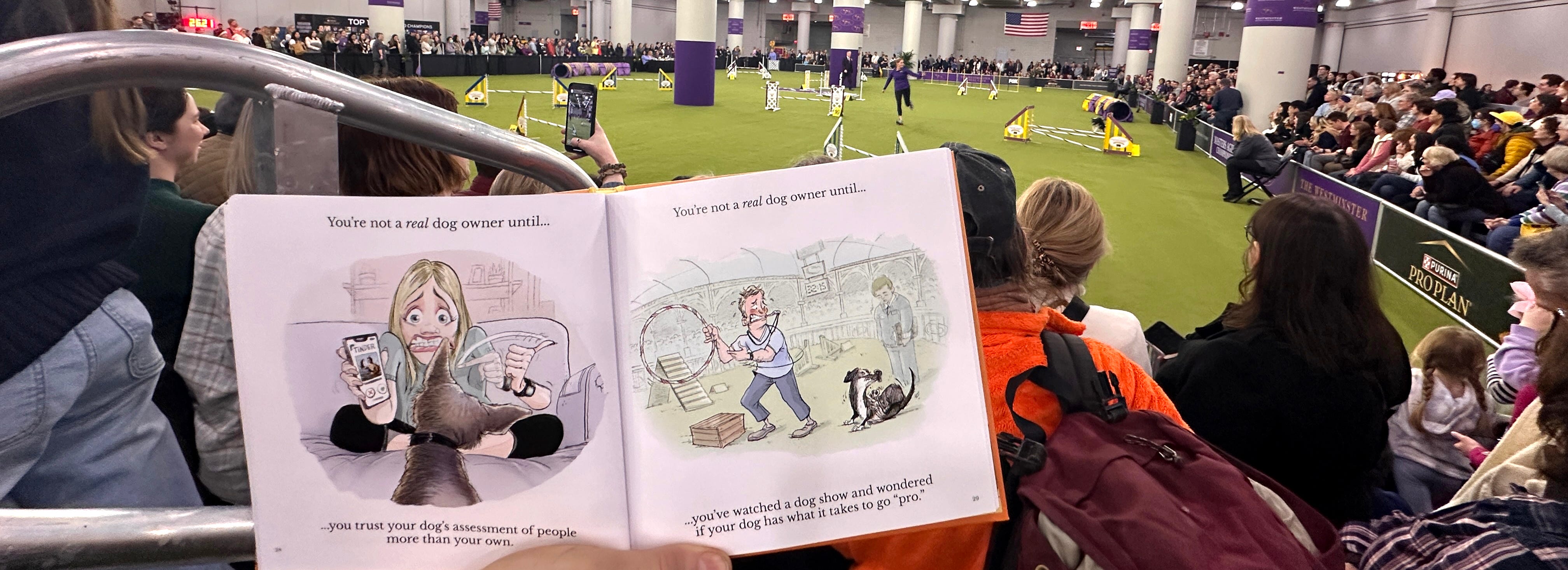 The day had started much less glamorously. Before I left for the Javits Center, I took my own prize pooch, Morris, out to pee on one of the gigantic, blackened lumps of snow that have taken up residence on our street. These icebergs arrive in February and stay until May, refusing to melt and absolutely refusing to pay rent. Morris, for the record, would not win Best in Show. He would win “Best in Farting on the Couch,” but he lacks the gait for the ring. He reminded me of one of the pages of our book: