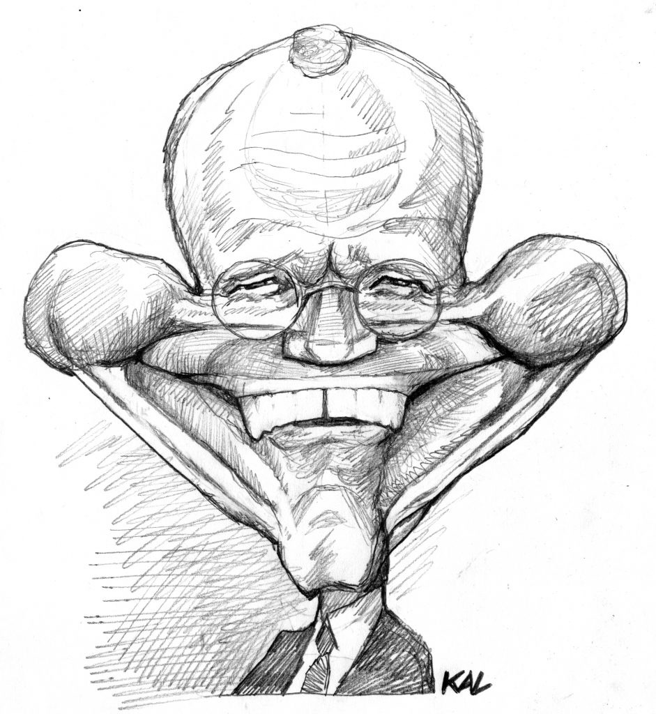 We got into the nuts and bolts of cartooning, and how timing on the page works a lot like timing on stage. KAL described how a composition can lead your eye right to that “aha moment,” the little spark where the joke lands and suddenly you’re in on it with him. He also talked about being the new guy back in the late ’70s, the first cartoonist at a magazine that he described as “grey and turgid” (which sounds less like a publication and more like something you’d need antibiotics for). To prove he belonged, he drew like a man possessed—layering on cross-hatching until the drawings practically shouted, “See? I’m worth the space!” The art had to look hefty enough to muscle its way in among all that serious text.