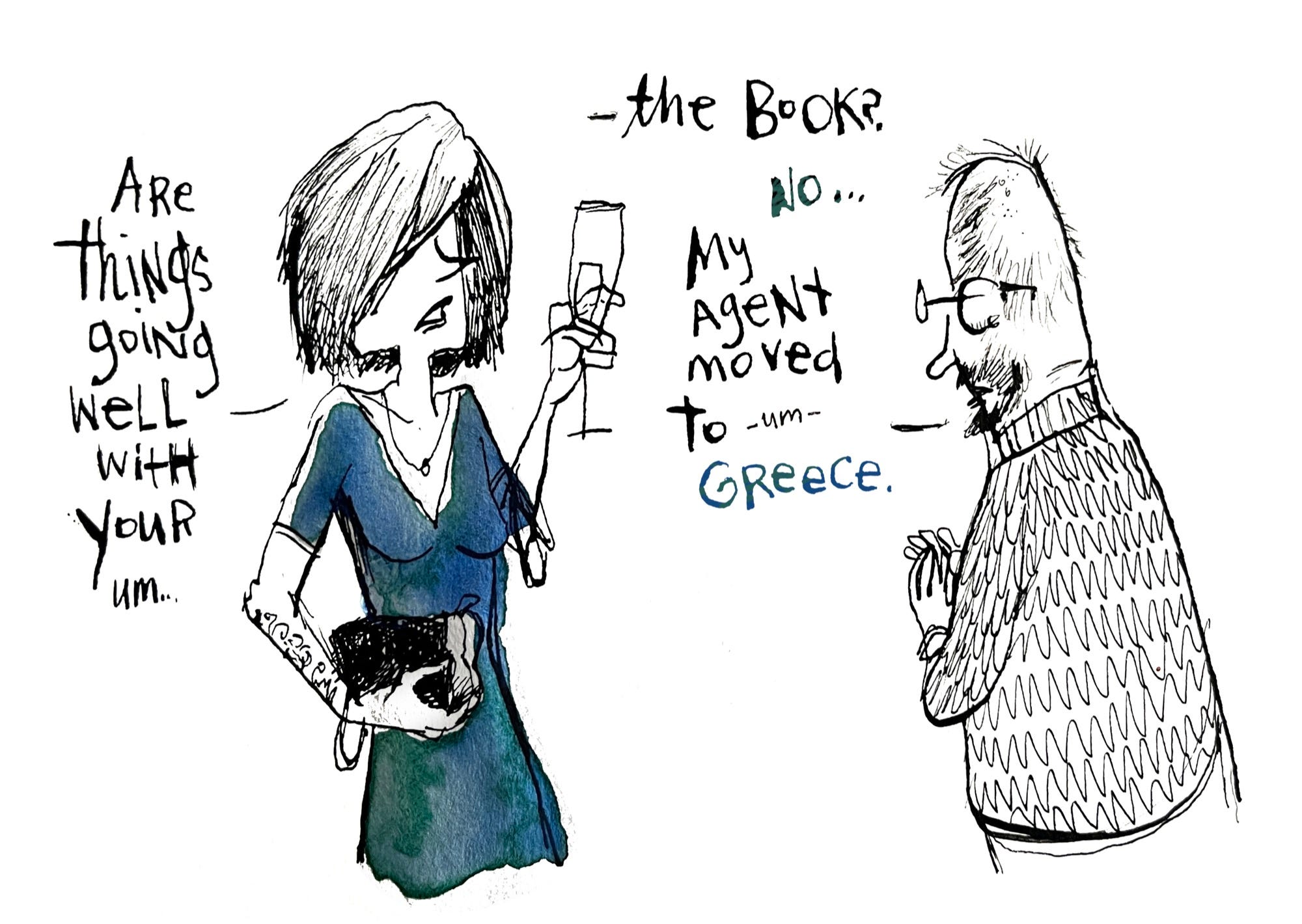 There was a small selection of finger food near the window. I snapped up what I could before hitting the bar and bumping into a batch of cartoonists I hadn’t seen in years. In fact, this was the first time most of the attendees had been in the same room since the offices shut down in March of 2020— it felt like meeting at the other end of a war. Who survived, who moved to North Carolina, who grew a beard, etc. So much to catch up on. So much eavesdropping on writers talking about what they think of other writers not in attendance…