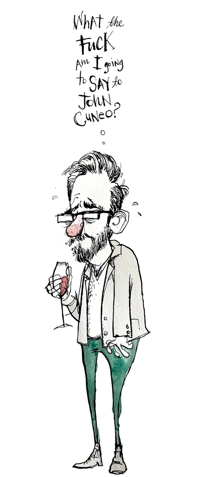 came by to say hello, and kindly offered to introduce me to John. I was so nervous I had to swig another plastic thimble of cheap Rose to steel my nerves. I was sweating like a Trump footsoldier at a deposition.I wandered over to the corner he was wisely hiding, and my mind ran blank. I’d just watched John do a live stream with him and Joe Ciardello just drawing and shooting the shit— Easily the best thing I’ve seen on YouTube. I shook his hand. I don’t remember what I said to him, nor him to me, but I know I walked away with a dry pair of pants. The best I could have hoped for.