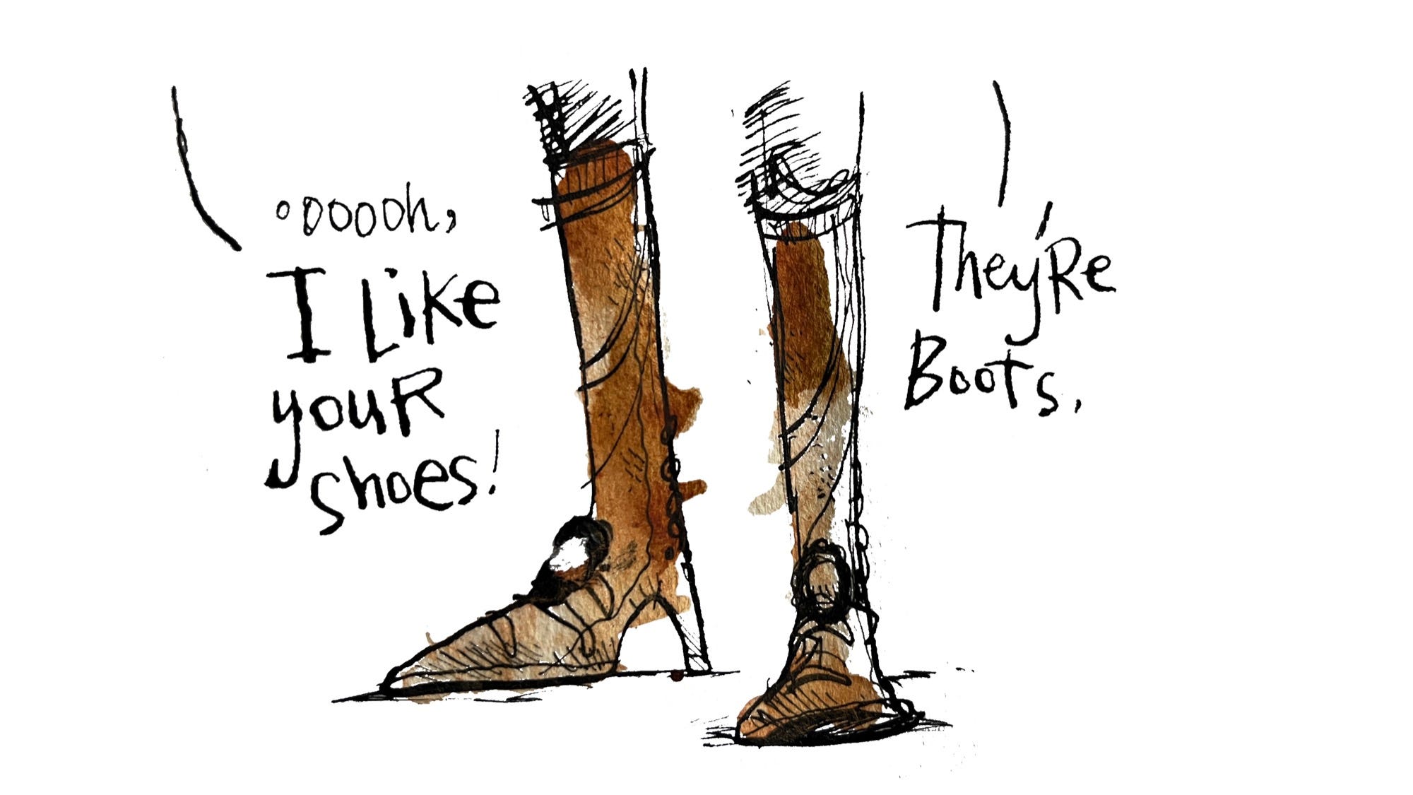 I wandered out to the bathroom to cool off and found someone had graffitied the urinal. Impossible to know who it was; everybody in the room carries a pen. I re-entered the sauna to eavesdraw a conversation with two colleagues who had just met in person for the first time. One was wearing fake leather boots. The person they were chatting to committed the crime of calling them shoes. Disaster.