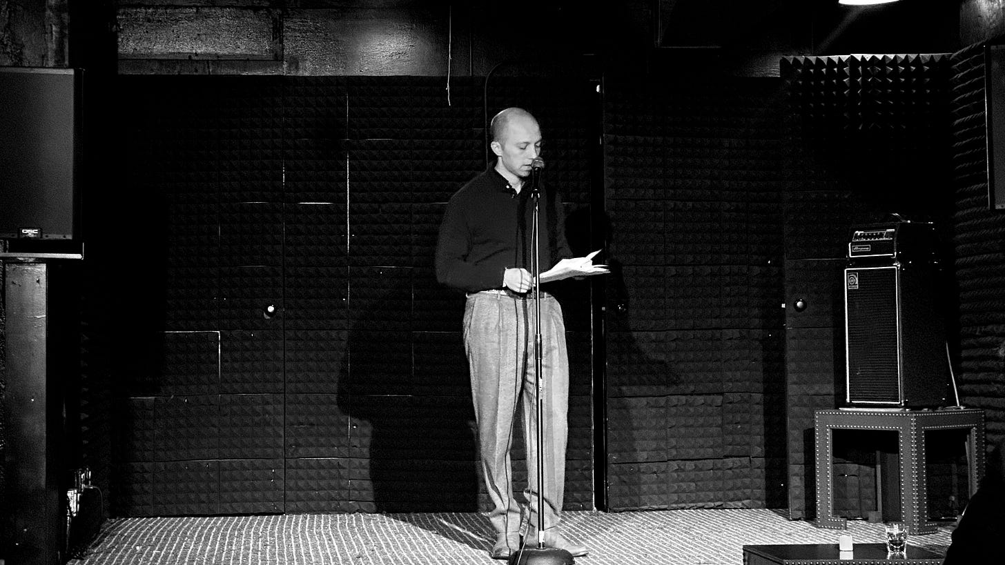 They were stationed just inside, radiating the nervous, electric energy that comes from throwing a party and realising people actually showed up. And not just a few people. Ross later announced that we sold 130 tickets to this thing. One hundred and thirty! In the year 2026, getting 130 New Yorkers to leave their apartments in the freezing, wet slop to listen to literary readings in a packed room is nothing short of a biblical miracle. As Ross put it: “Literary life is extremely alive and well.”