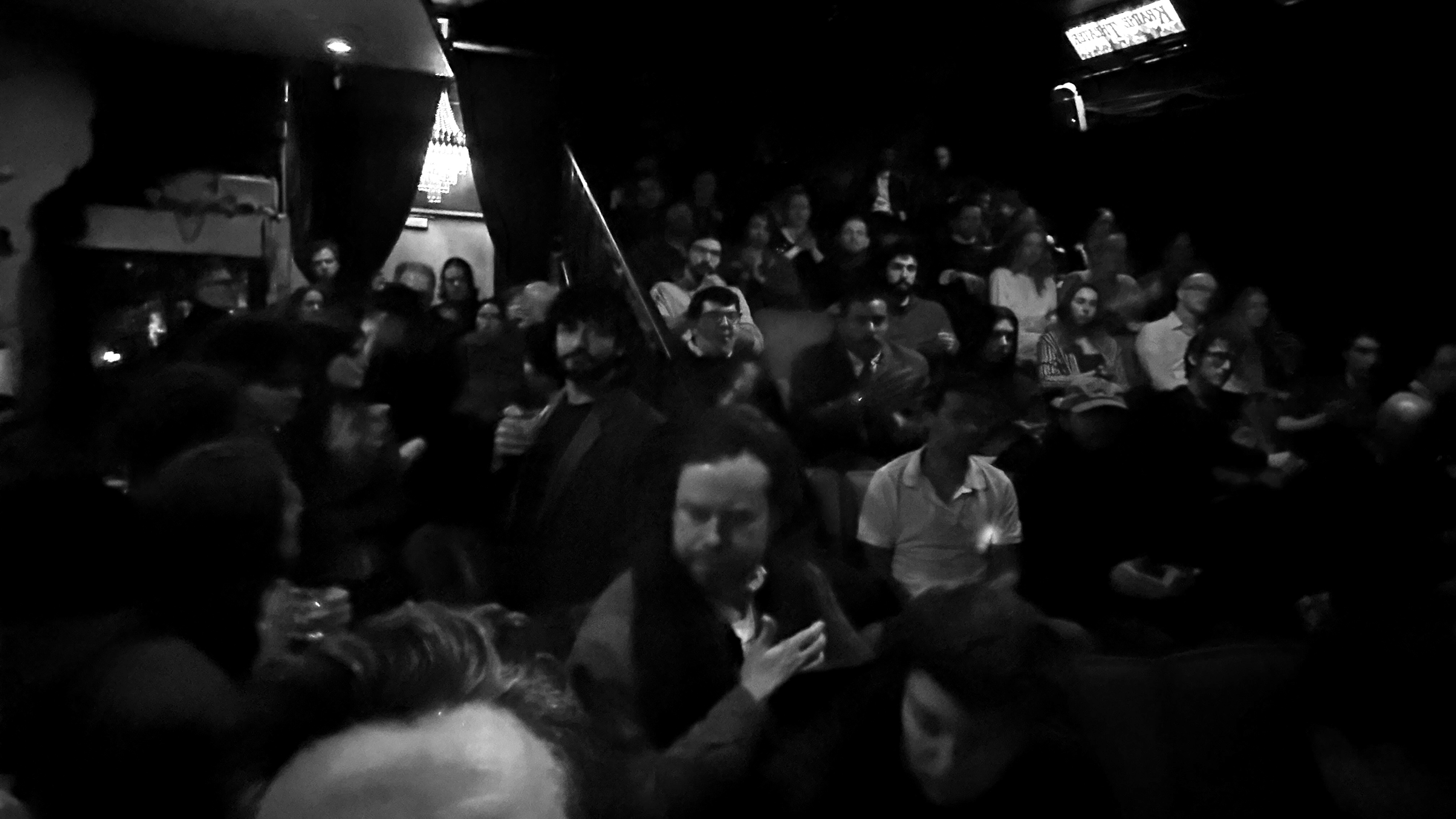 As the night kicked off, the sheer physical reality of the New York literary scene became unavoidable. I don’t mean that metaphorically. I mean, you literally could not avoid the physical reality of other people because the room was shoulder-to-shoulder.